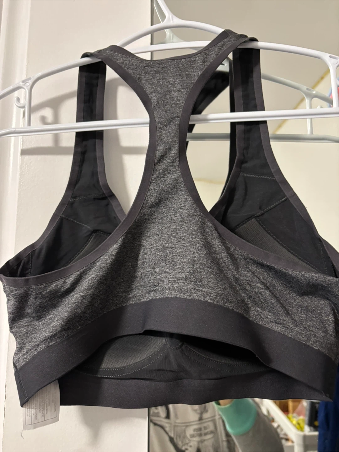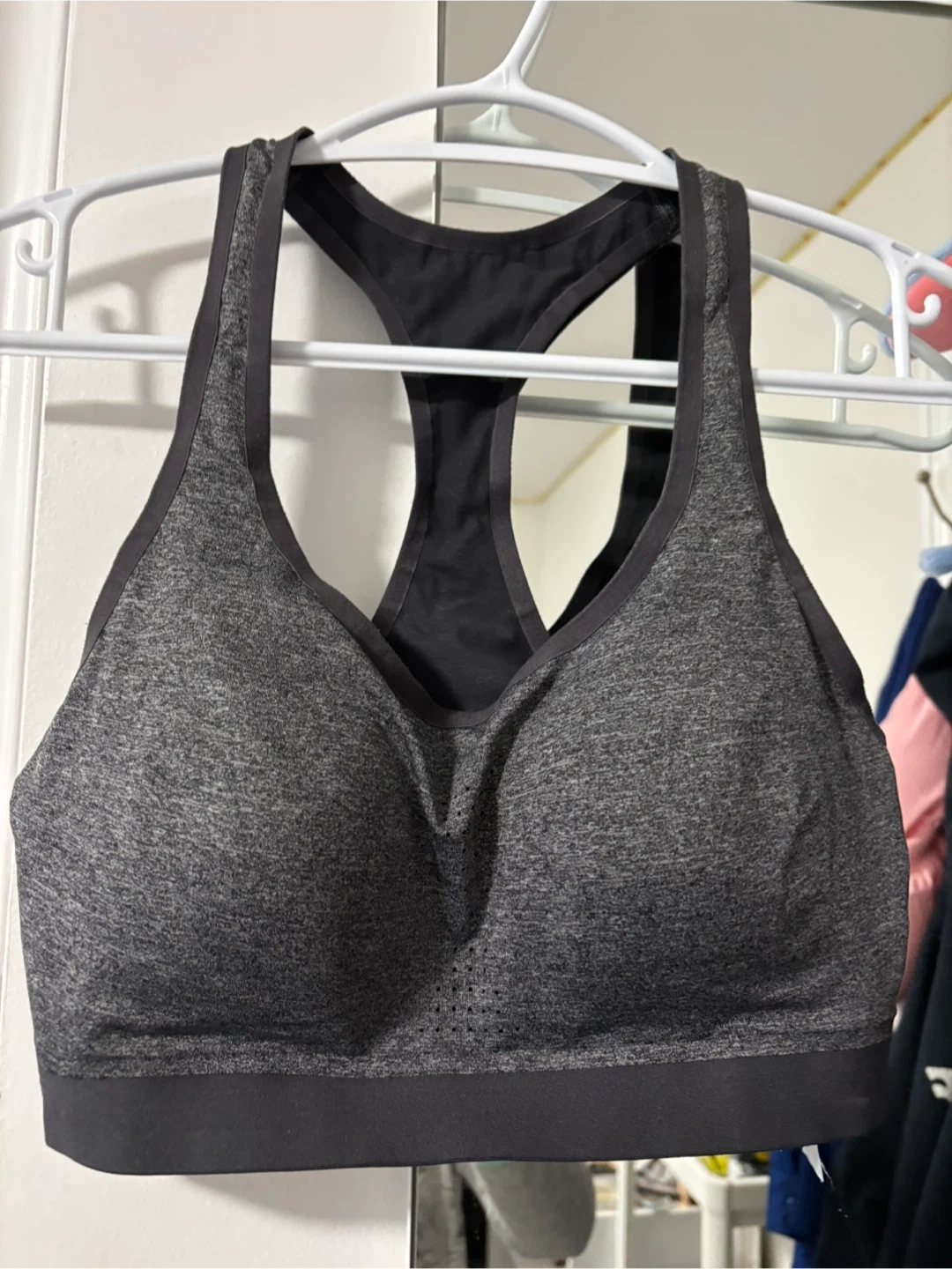 Selling a gently used Athletic Works sports bra in grey. It's in great condition and ready for your workouts! Perfect for low to medium impact activities. By Uniqlo