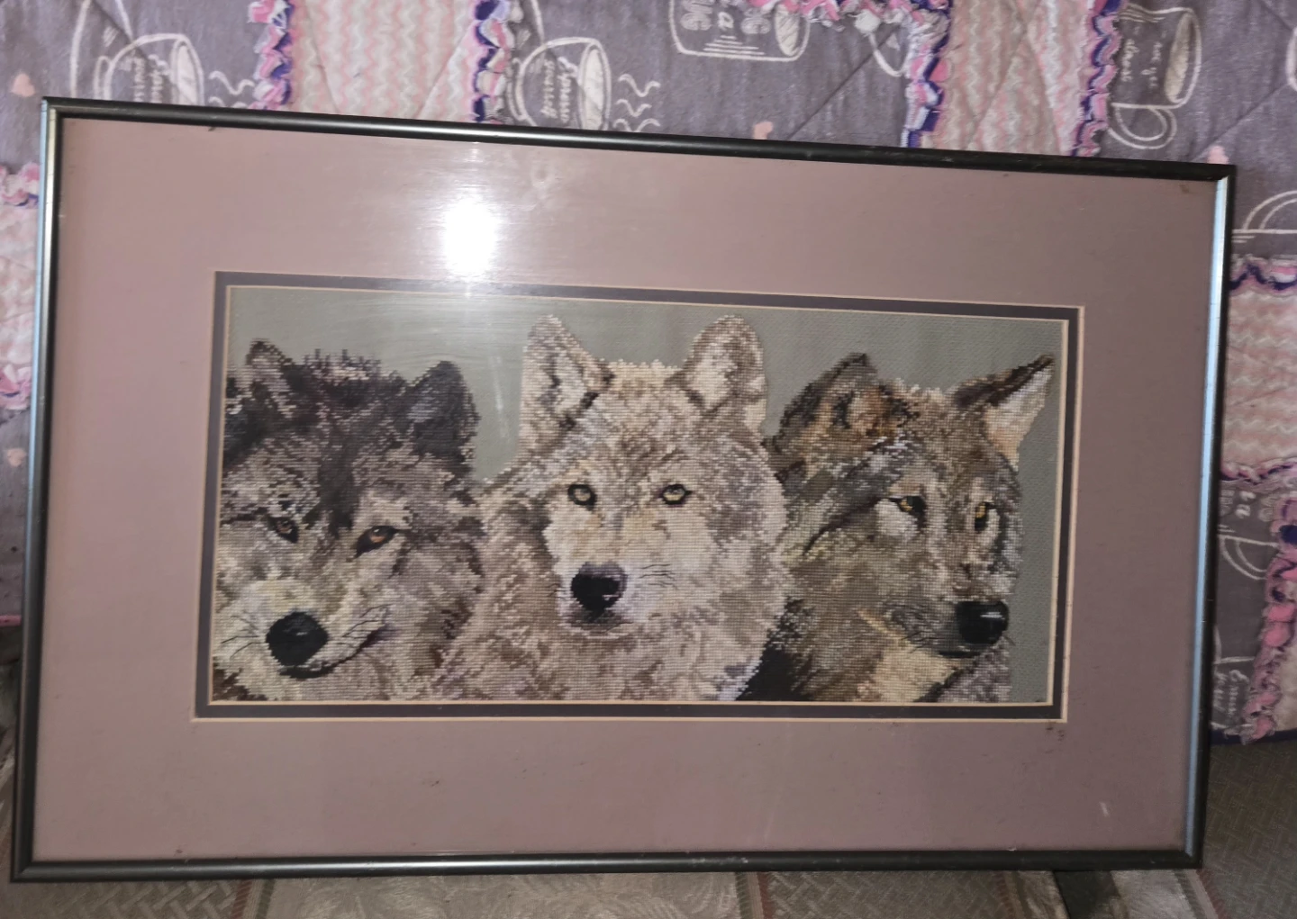 This is fully done in crosstitch using blend floss. Very detailed done as special project. Many hours went into stitching has been custom framed and matted . Picture is approximately 16"X 20 or bit larger