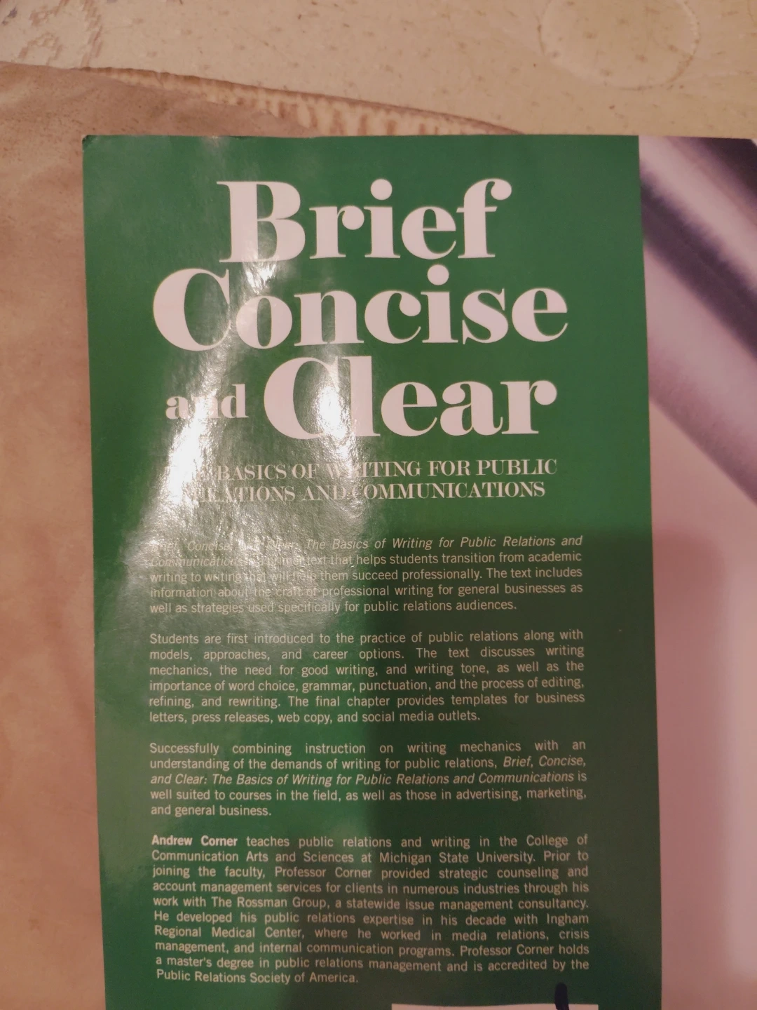This revised 1st edition textbook focuses on writing for public relations and communications. Students are introduced to the practice of public relations writing with mechanics, good writing, and tone. It's edited by Andrew Corner. Useful for students studying public relations or communications.