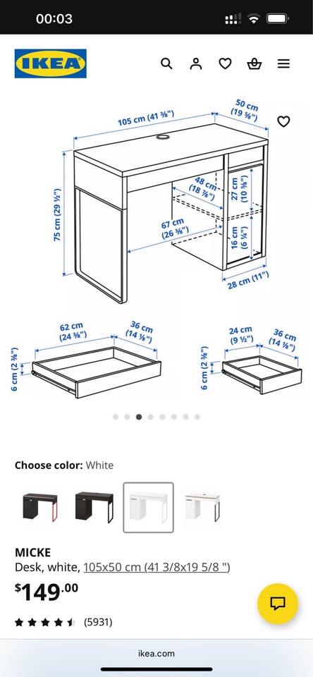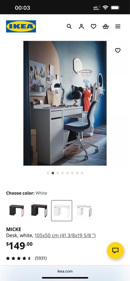 Buy & SellIKEA MICKE Desk (White)IKEA MICKE Desk (White)$75Pickup: Joyce–Collingwood Station Let me know if you're interested!WHERE TO MEETCheck LocationView MapSELLERLuckyMetrotown100 reviews1 chats·1 favorites·29 viewsSEND CHAT TO SELLERHi Lucky! I’m interested in your listing.Hi Lucky! I’m interested in your listing.Get the Karrot app to chatSign In to chat