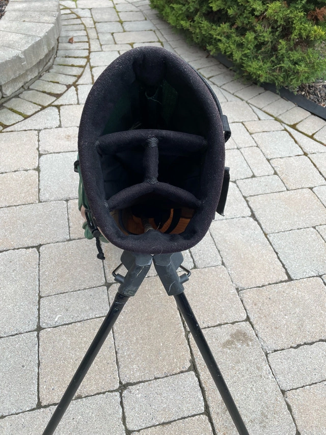 34IZZO Golf Bag with Stand: This golf bag is designed for convenience and functionality on the course. While it shows signs of use, it remains in good working condition, ready to accompany you on your next round of golf. Key Features: * Durable construction * Functional stand mechanism * Multiple pockets for storage Ready to tee off with a reliable companion? Of course, you are! But remember, this golf bag is like that quirky golf buddy who's been around the block—it has stories to tell and might show a bit of wear, but it's always up for a good game. If the ad's still up, the golf bag is ready for its next adventure.