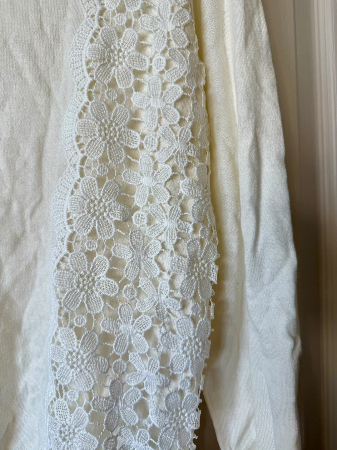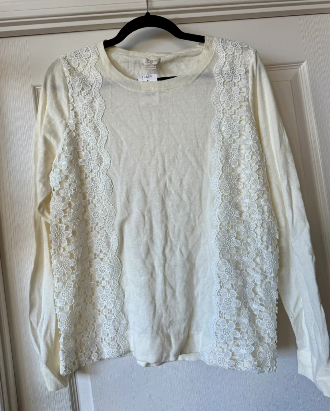 478Lovely J.Crew cream-coloured long sleeve top/sweater. Brand new - can be gifted It features beautiful lace detailing down the sides. It's a size large. Perfect for adding a touch of elegance to your wardrobe! Lakeshore and parklawn