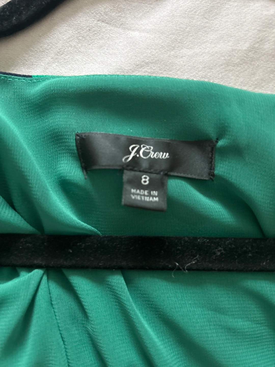 Women's green polka dot blouse. Long sleeves, button-up front. Size 8. Fitted waist. Zipper opening near armpit but I can put it on without. Great for spring! Body is double layered. Pick up Bloor East