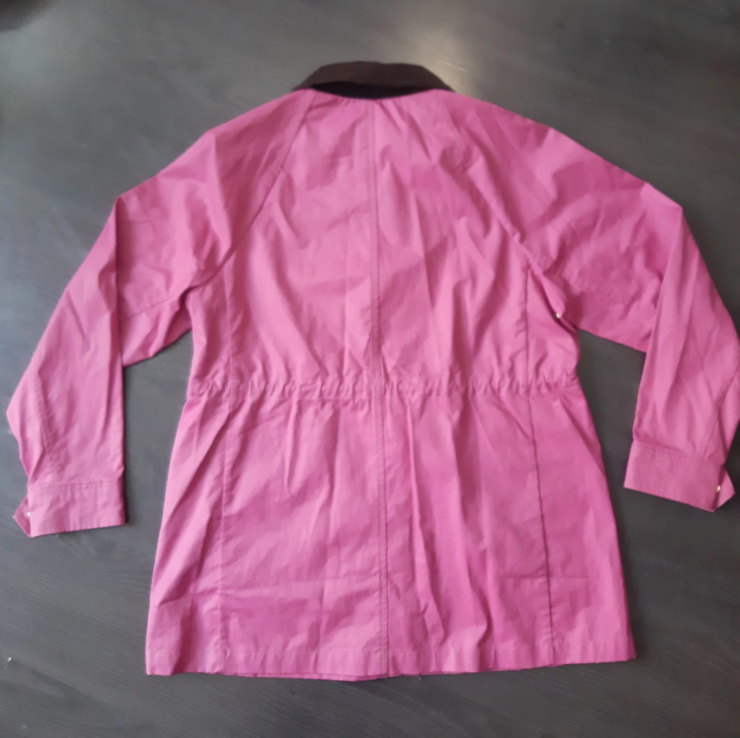 Selling a J.Crew pink jacket in size medium. It has a brown corduroy collar and detailing. Perfect for spring or fall!