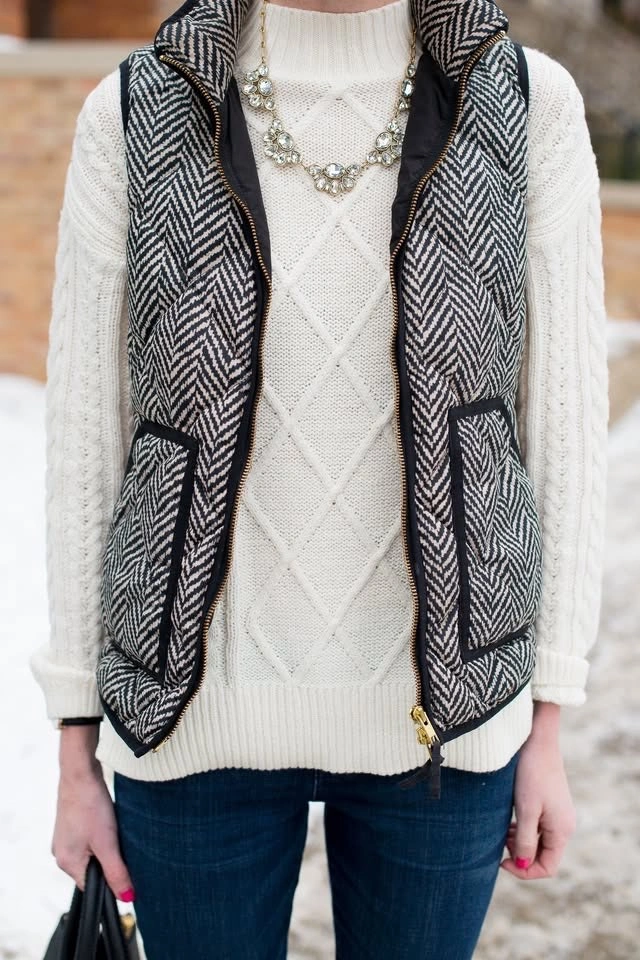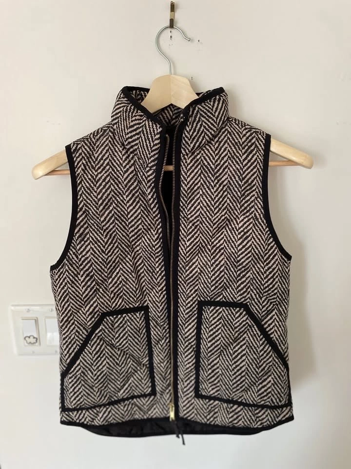 J.Crew Quilted Herringbone Puffer Vest Down filled, polyester Released: Fall 2012 Creative Director Jenna Lyons Measurement Chest: 19 inches Length: 22.5 inches Extra Small Originally retailed for $150