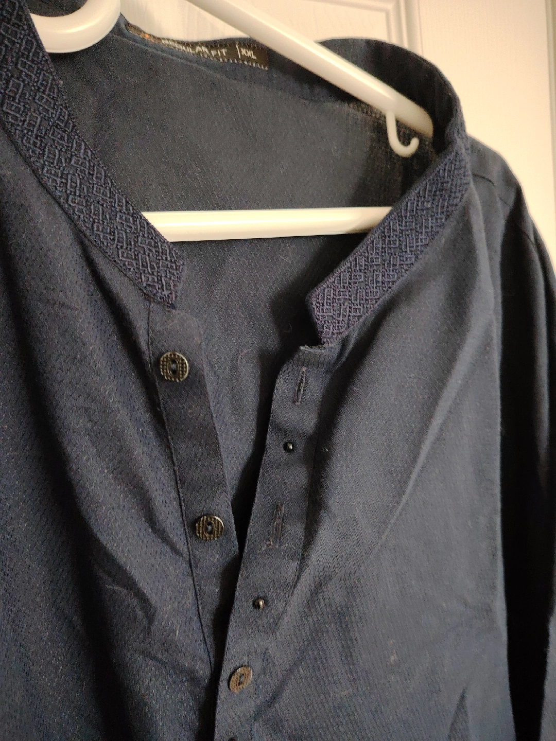 851I'm selling a long-sleeved shirt. It's a J brand, regular fit, and size XXL. The shirt is a dark navy colour and has a button-up design. Cash only no refund pick up at Erin mill town center mississauga.