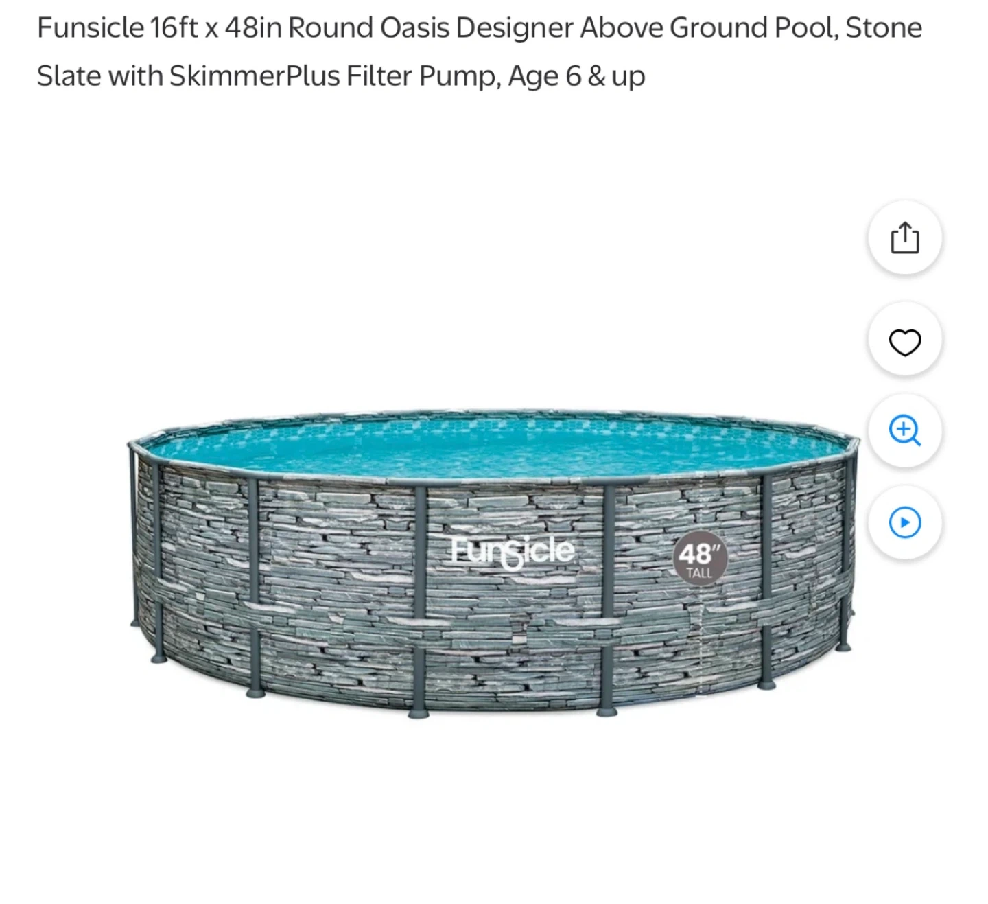 This Funsicle pool features a stone slate design and comes with a SkimmerPlus filter pump. It's 16ft in diameter and 48in tall. Includes a ground cloth and SureStep ladder for convenient access. The durable puncture-resistant liner is made of polyester mesh.