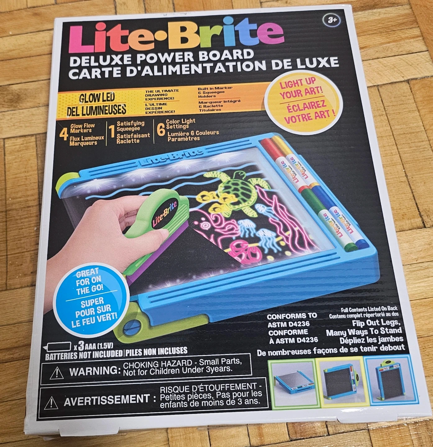 Brand new, unopened! Includes 4 glow markers & squeegee. 6 colorful light settings – perfect for kids 3+. 🎨
