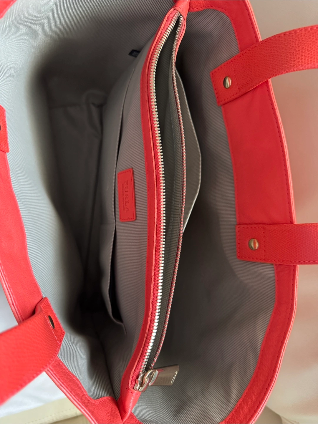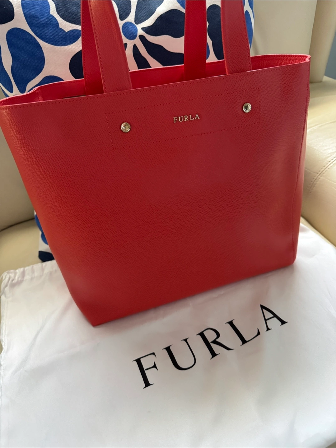 Selling a rare Furla tote bag in a lovely orange leather! It's in great condition (flawless. Only wore once) and comes with a dust bag. Perfect for everyday use or as a stylish accessory. Lots of pockets and zippered compartment.