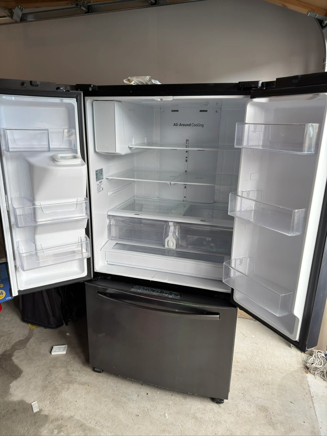 Selling a Samsung stainless steel French door refrigerator. It's in good working condition and ready for a new home! All the shelves and drawers are included as pictured.