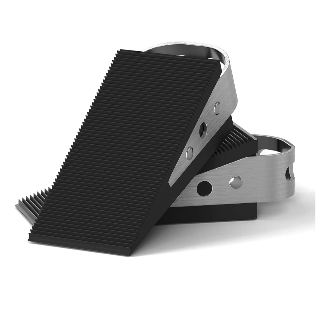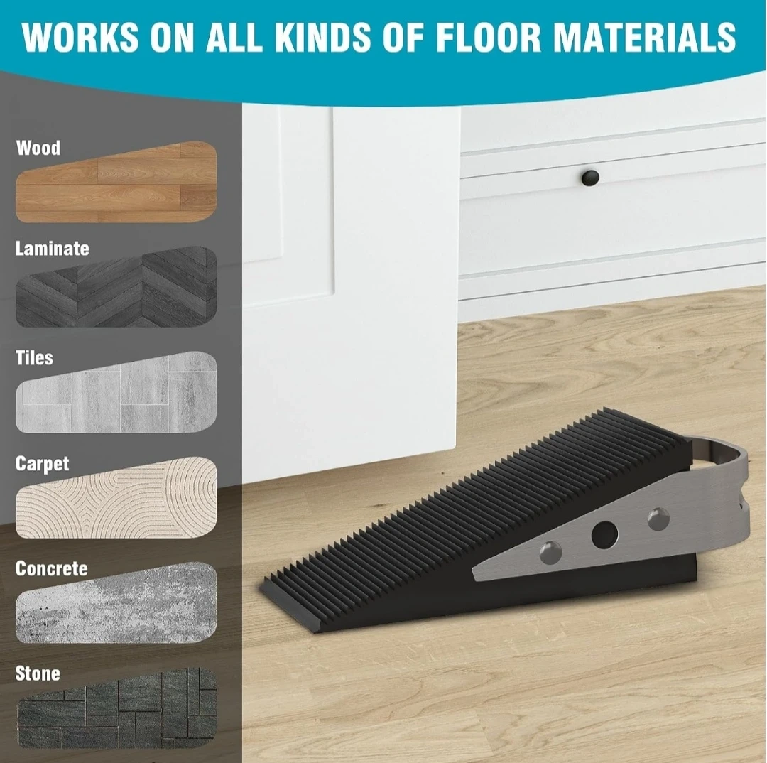 FLORA GUARD Heavy-Duty Door Stoppers - 2 Pack Non-Scratching Rubber Door Stop Wedge, Anti-Slip Door Stop for Home & Office, Brushed Stainless Steel & Black Rubber, Ideal for All Floor Types, Black