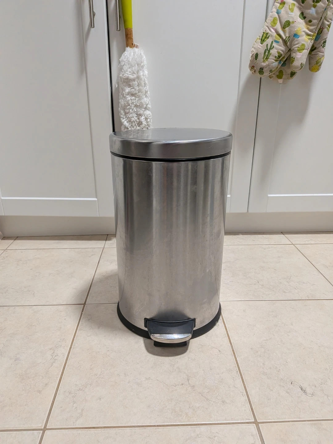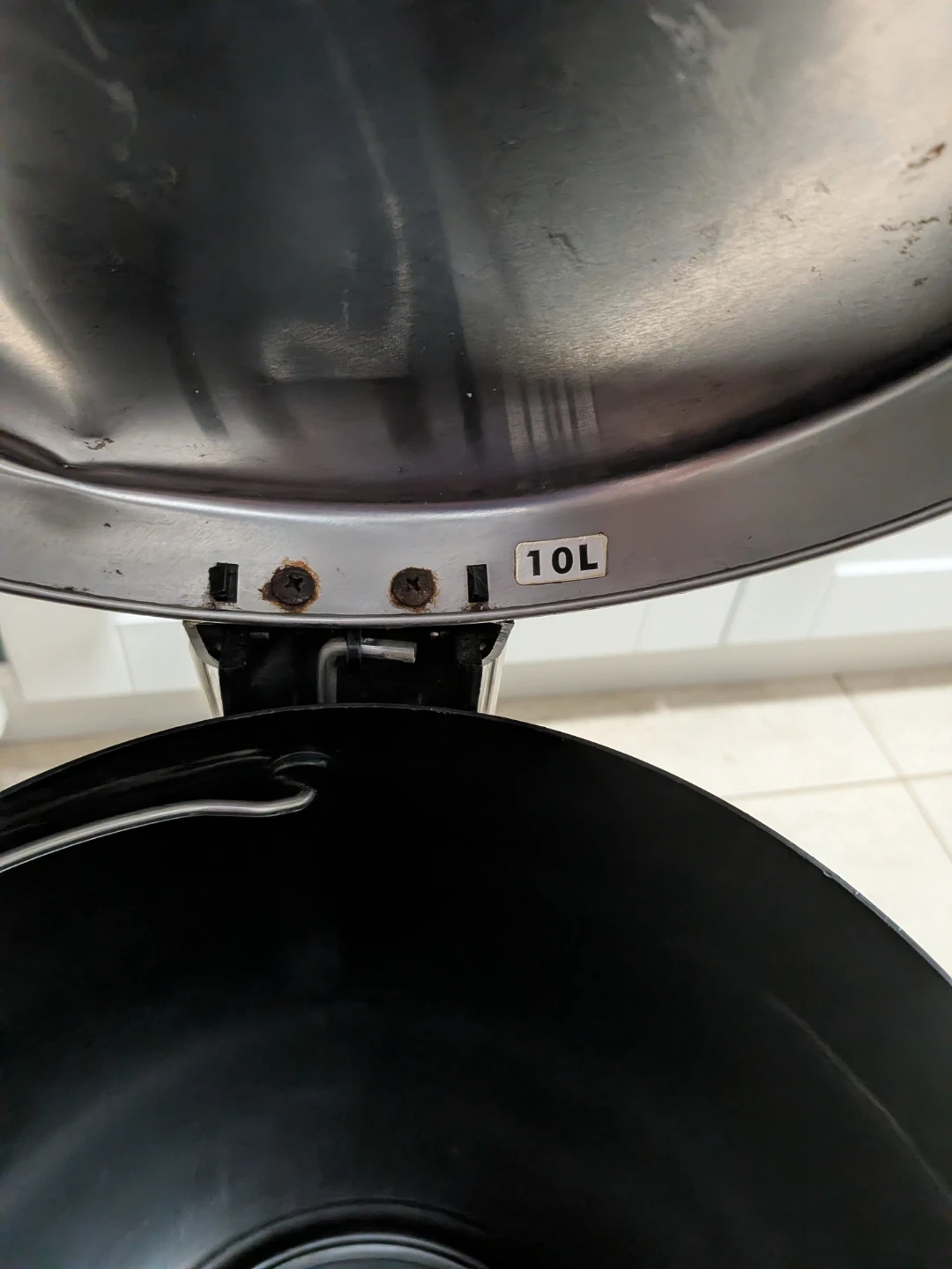 This simplehuman trash can is made of stainless steel and has a 10L capacity. It's a has a step opener and a removable bin inside.