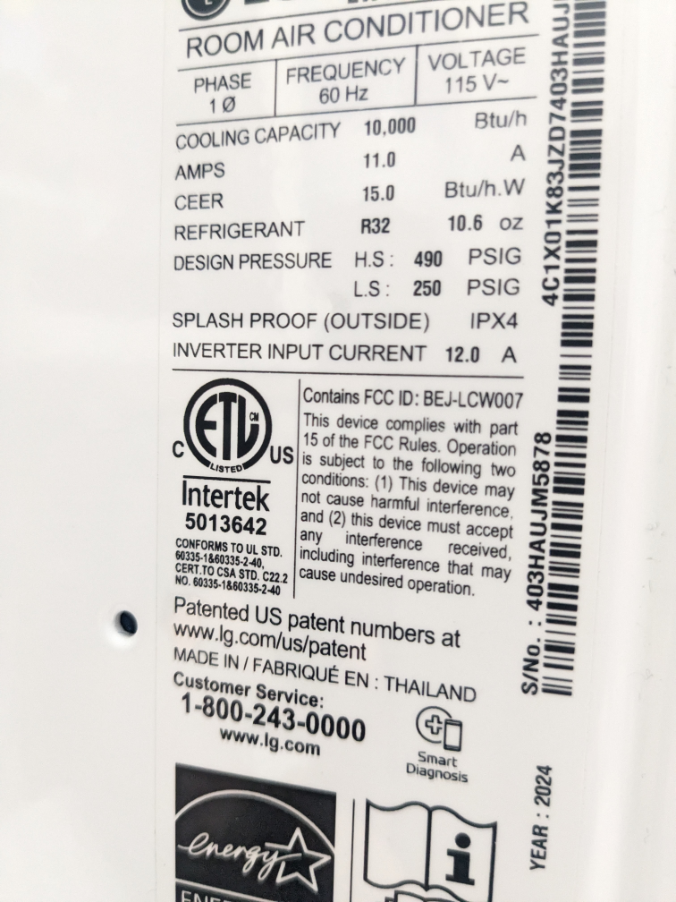 10,000Btu LG Dual Inverter Wi-Fi SMART Window AC Unit