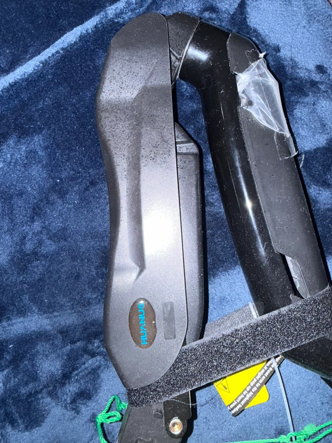 This is a HUANUO single monitor desk mount arm. It's made of black metal and plastic. The mount features adjustable height and angle for optimal viewing. It clamps securely to your desk for stability.
