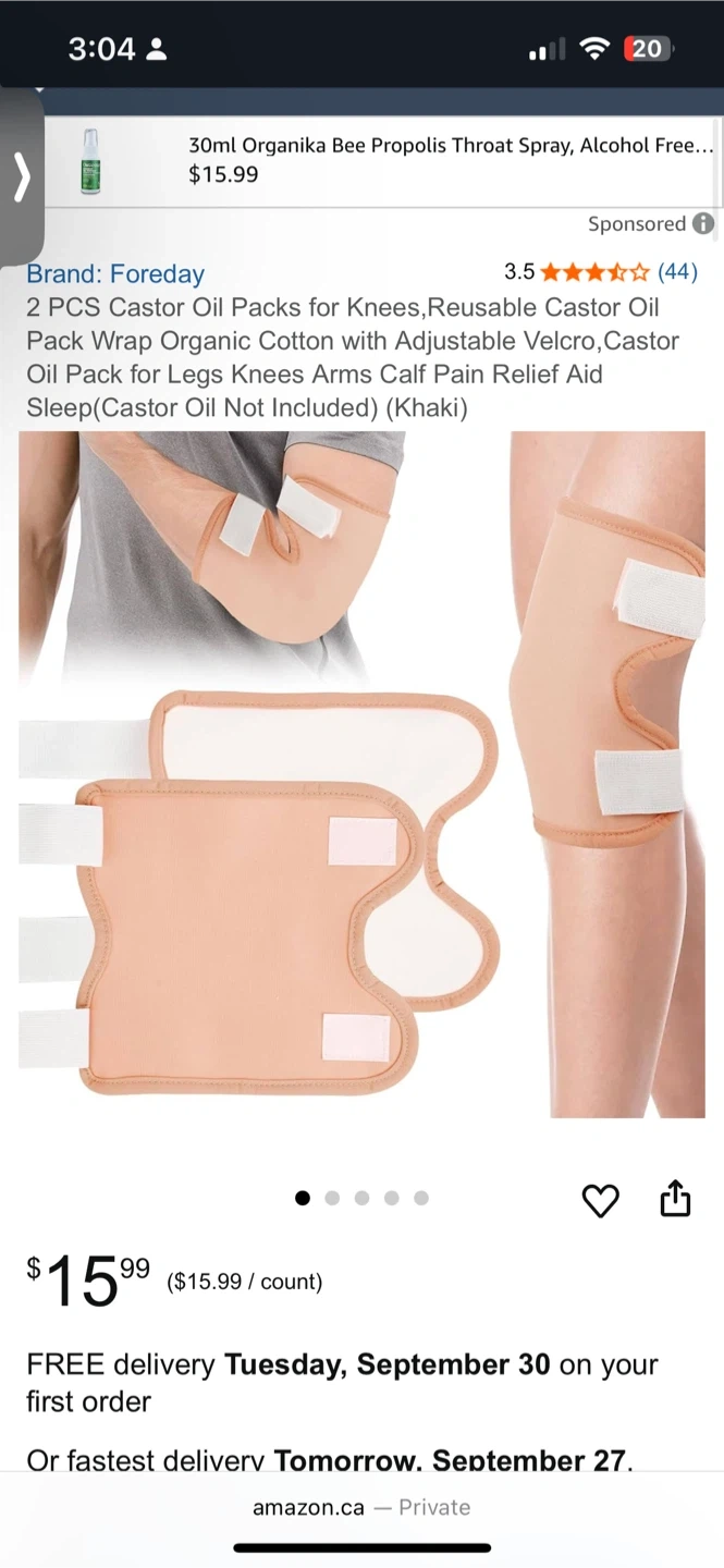 I'm selling a new set of Foreday Castor Oil Packs for Knees. These reusable castor oil packs come with organic cotton and adjustable Velcro. They're designed for the legs, knees, arms, and calf to provide pain relief aid during sleep. Originally bought for $15.99