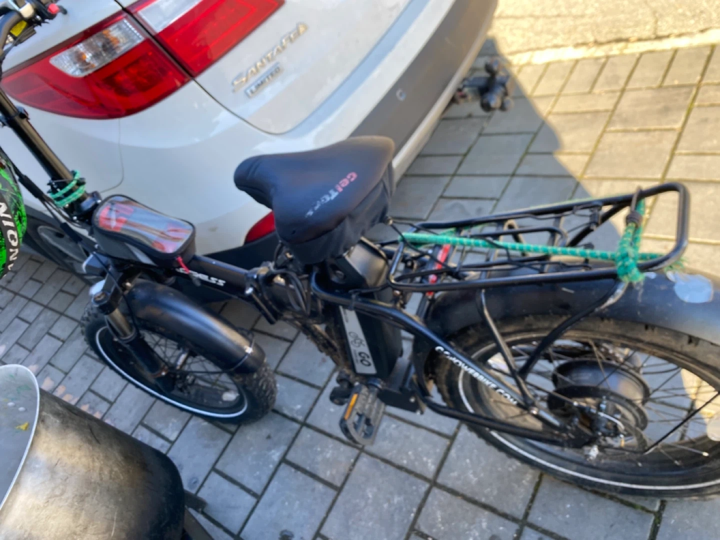 This is a GOPower electric fat tire bike. It features a digital display showing speed and mode. The bike has a black frame and a comfortable seat god working delivery