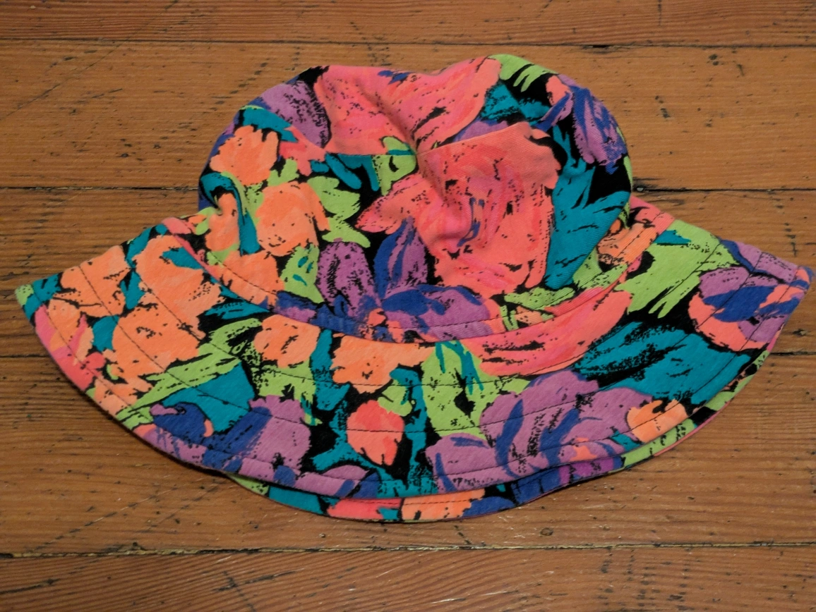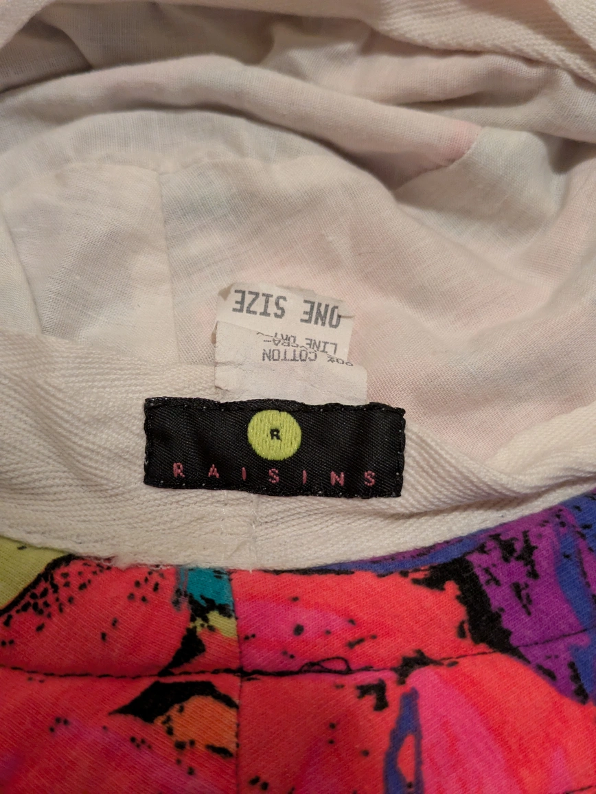 Vintage Raisins bucket hat! It features a vibrant floral pattern and is one size fits all. The hat is made of 100% cotton, making it comfy for all-day wear. in excellent condition