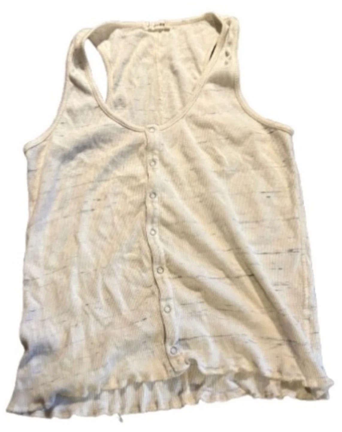 Casual, easy, and perfectly lived‑in — this rag & bone/JEAN ribbed button‑front tank is a great staple for layering or relaxed everyday outfits. Soft ribbed knit with a scoop neckline, functional buttons, and a slightly ruffled hem.