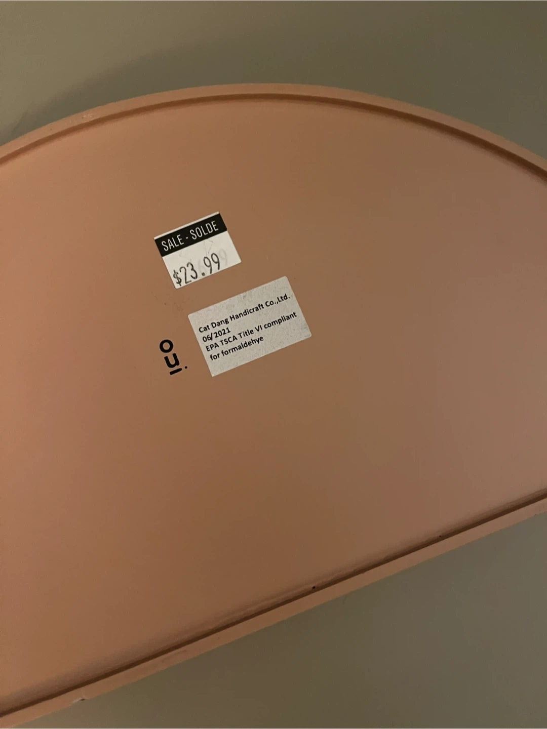 Selling a cute half-moon tray from OUI! It's a lovely peach colour and originally cost $23.99. Perfect for adding a touch of style to any room