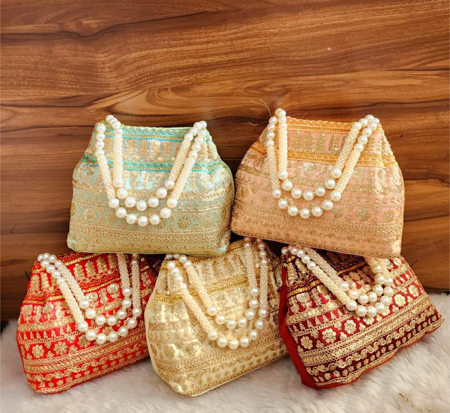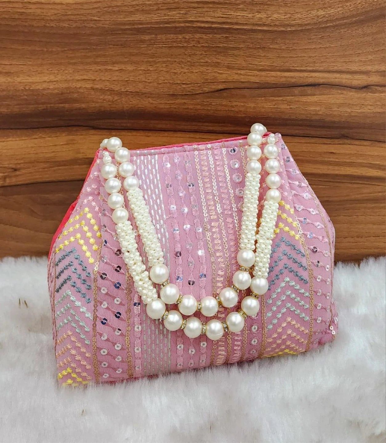 Embroidered Clutch Bag with Pearl Handles