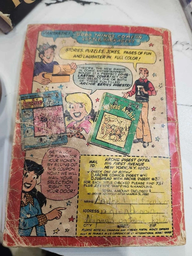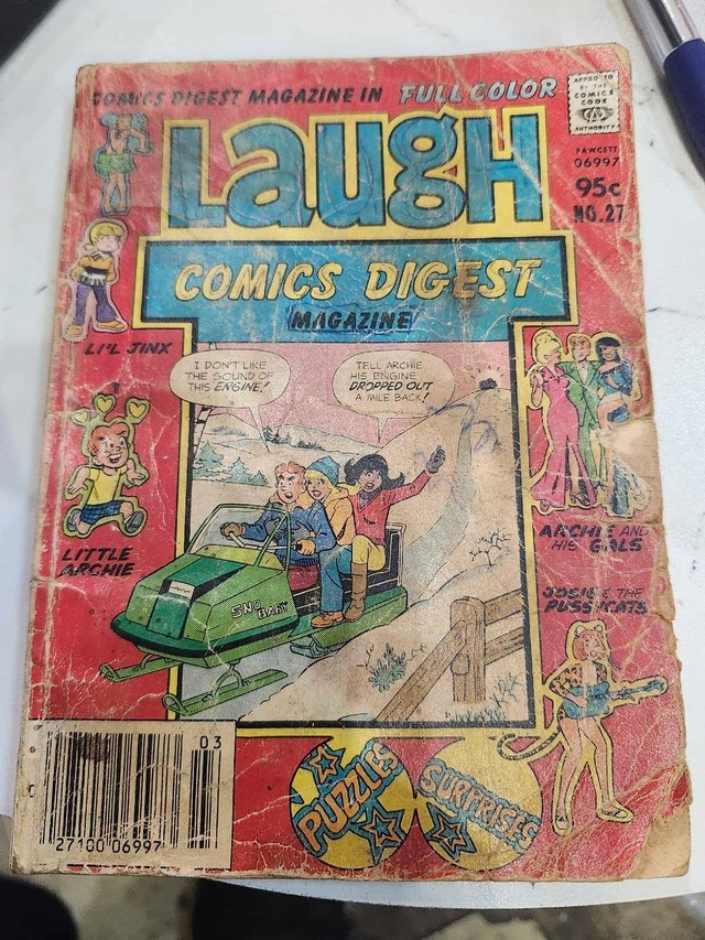 Dive into nostalgia with this vintage Laugh Comics Digest! This magazine is a blast from the past, filled with classic comic strips, jokes, and quirky stories that are sure to bring a smile to your face. The magazine has some wear and tear from age, adding to its vintage charm. If the ad is up, it's still available, so don't miss out on owning a piece of comic book history! Cash accepted.