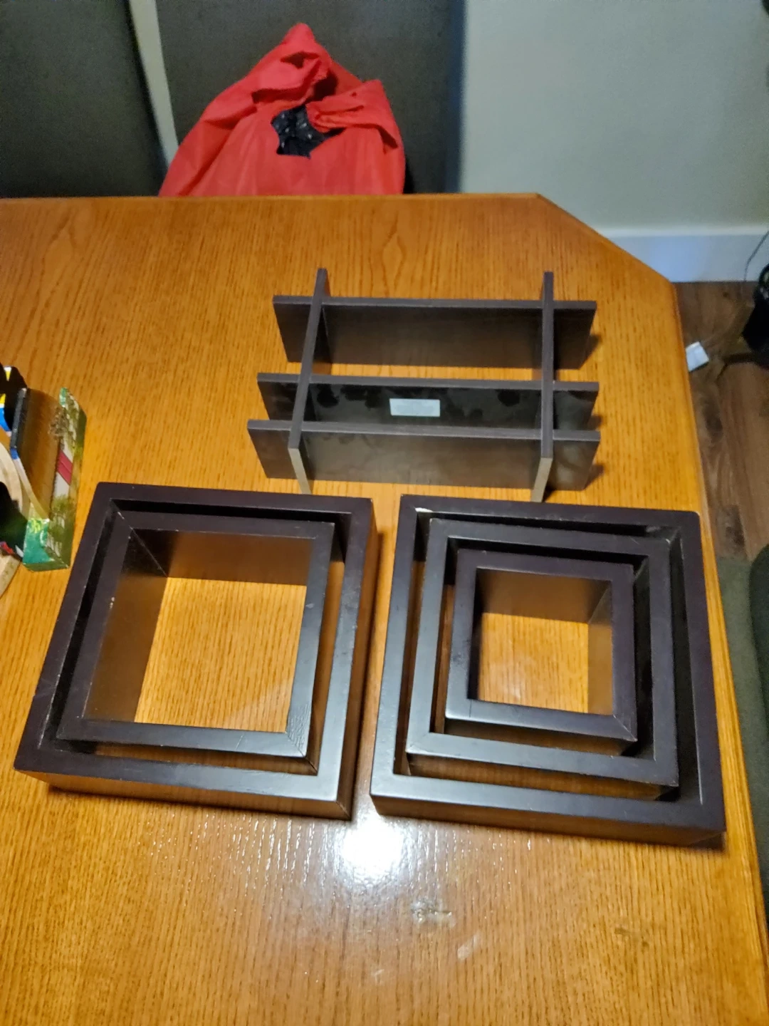 6 dark brown decorative nesting wall cubes are a stylish way to add some dimension to your walls! They're in great condition and ready to be hung up