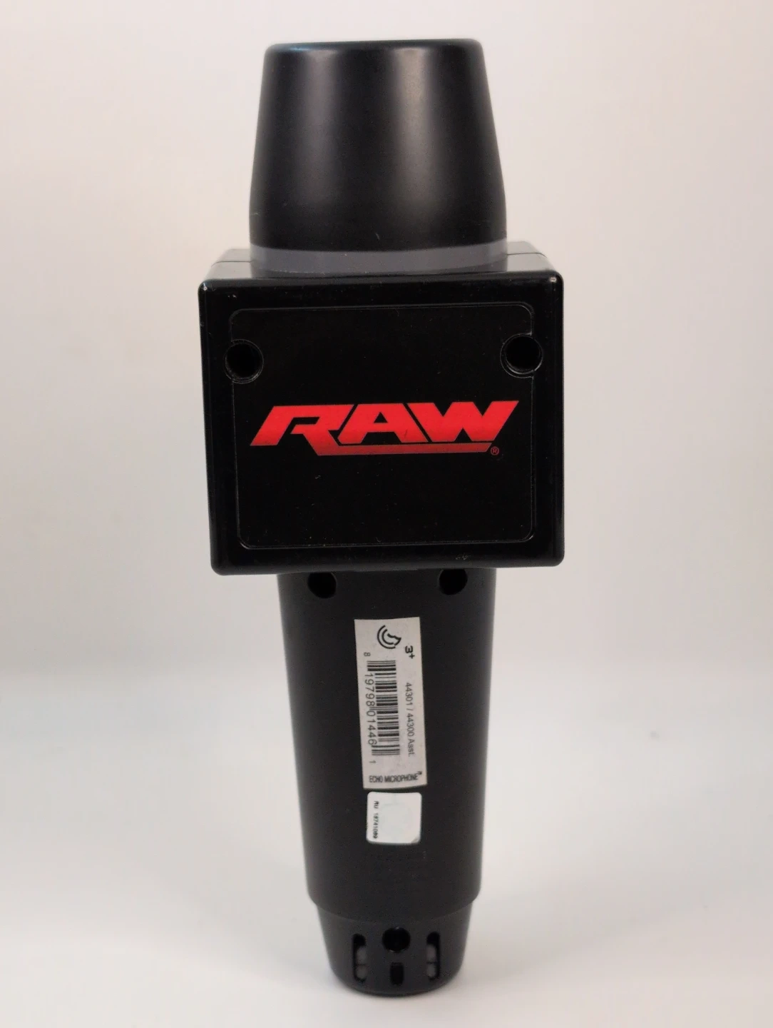 It's a black WWE RAW toy microphone. Features the WWE RAW logo prominently on the mic head. It's great for little wrestling fans! Item tested and working as it should all question are welcome
