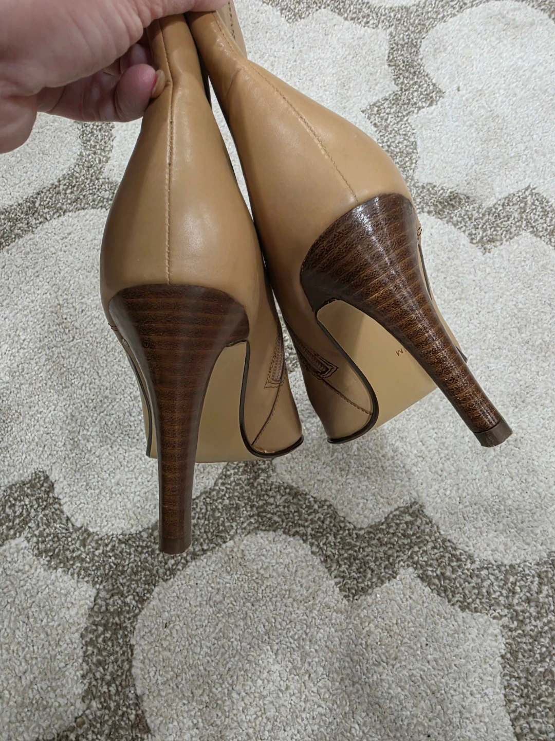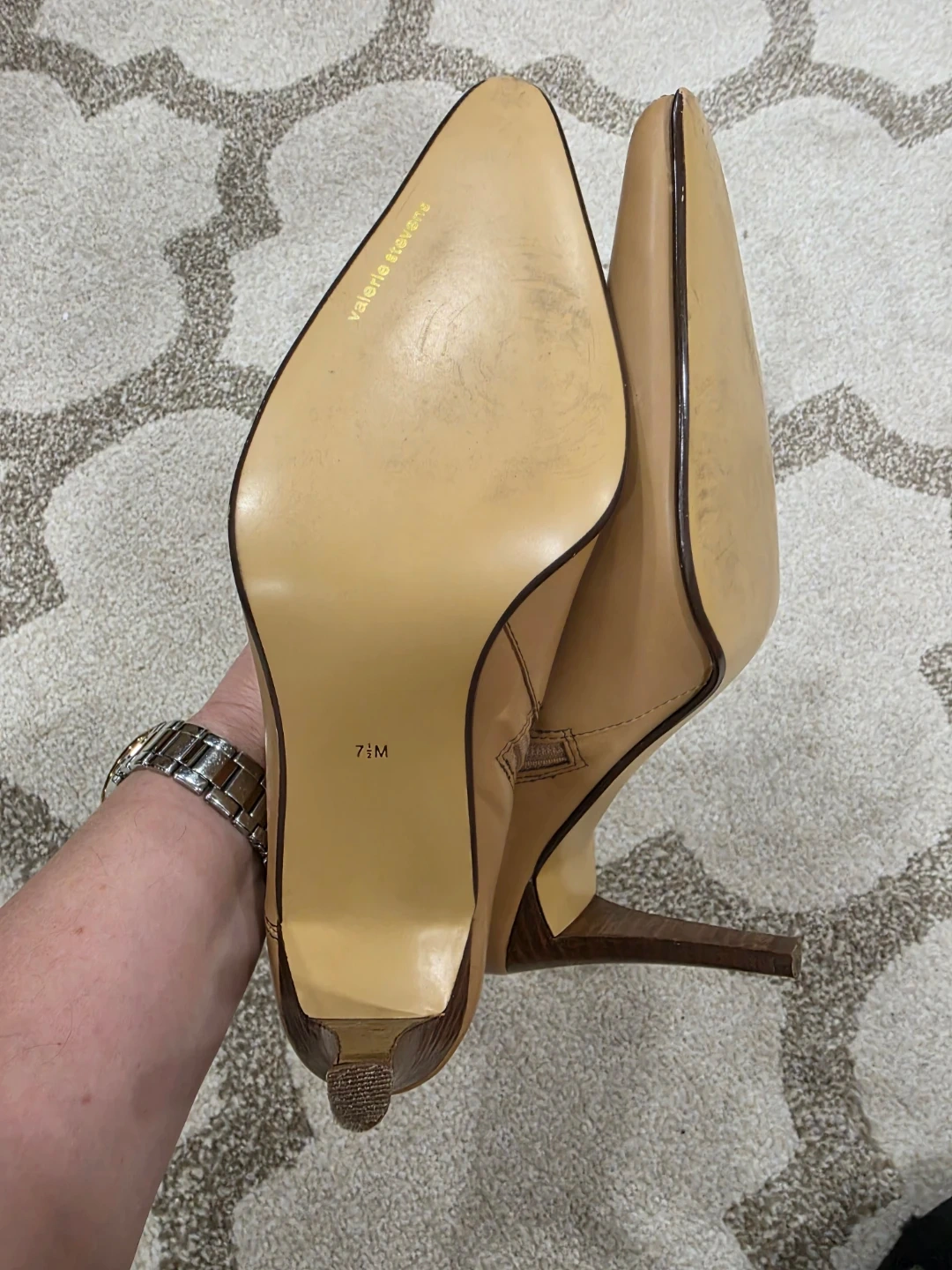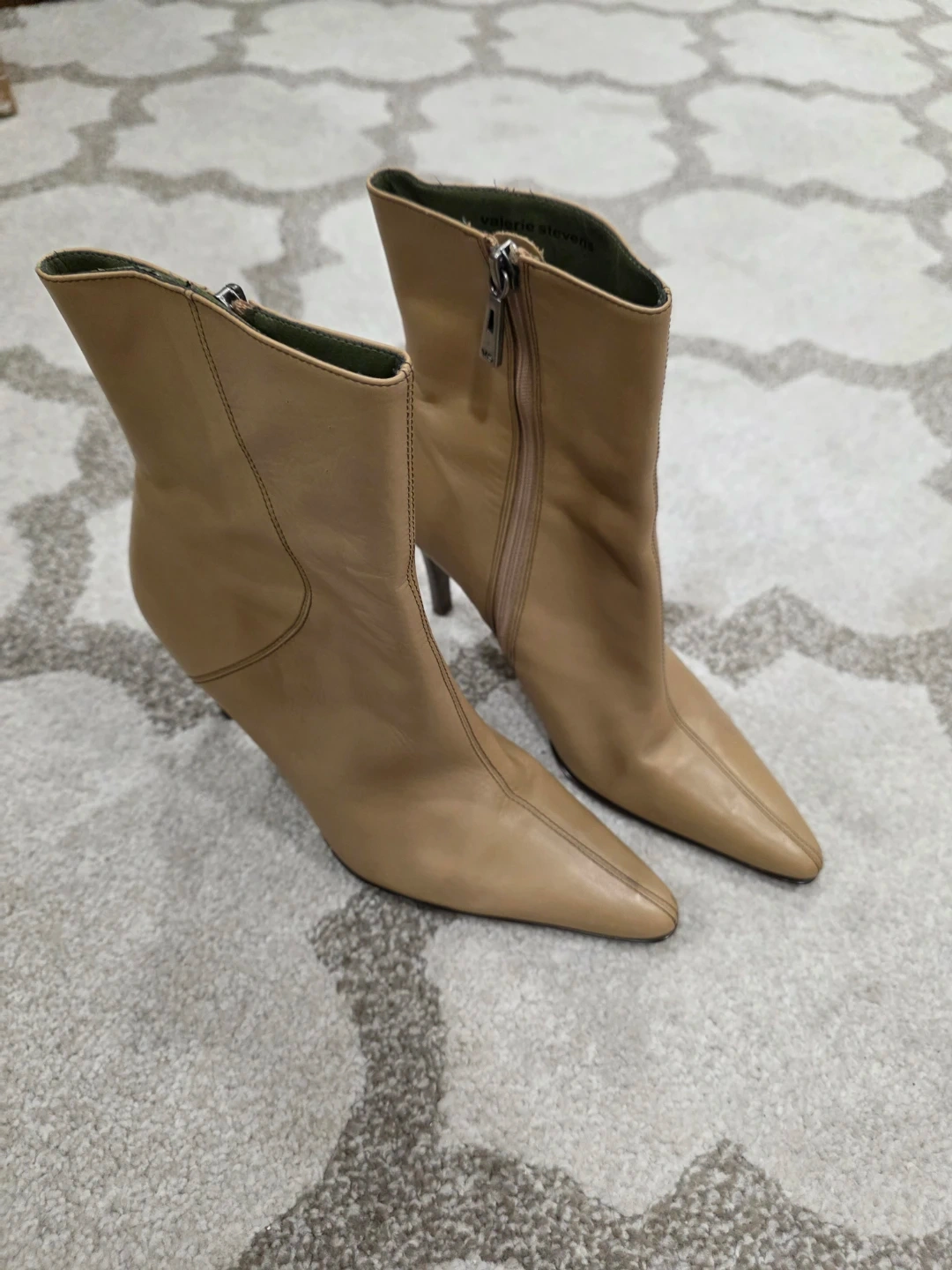 Selling a pair of Valerie Stevens heeled booties in a tan colour. They are a size 7M. Perfect for adding a touch of style to any outfit!