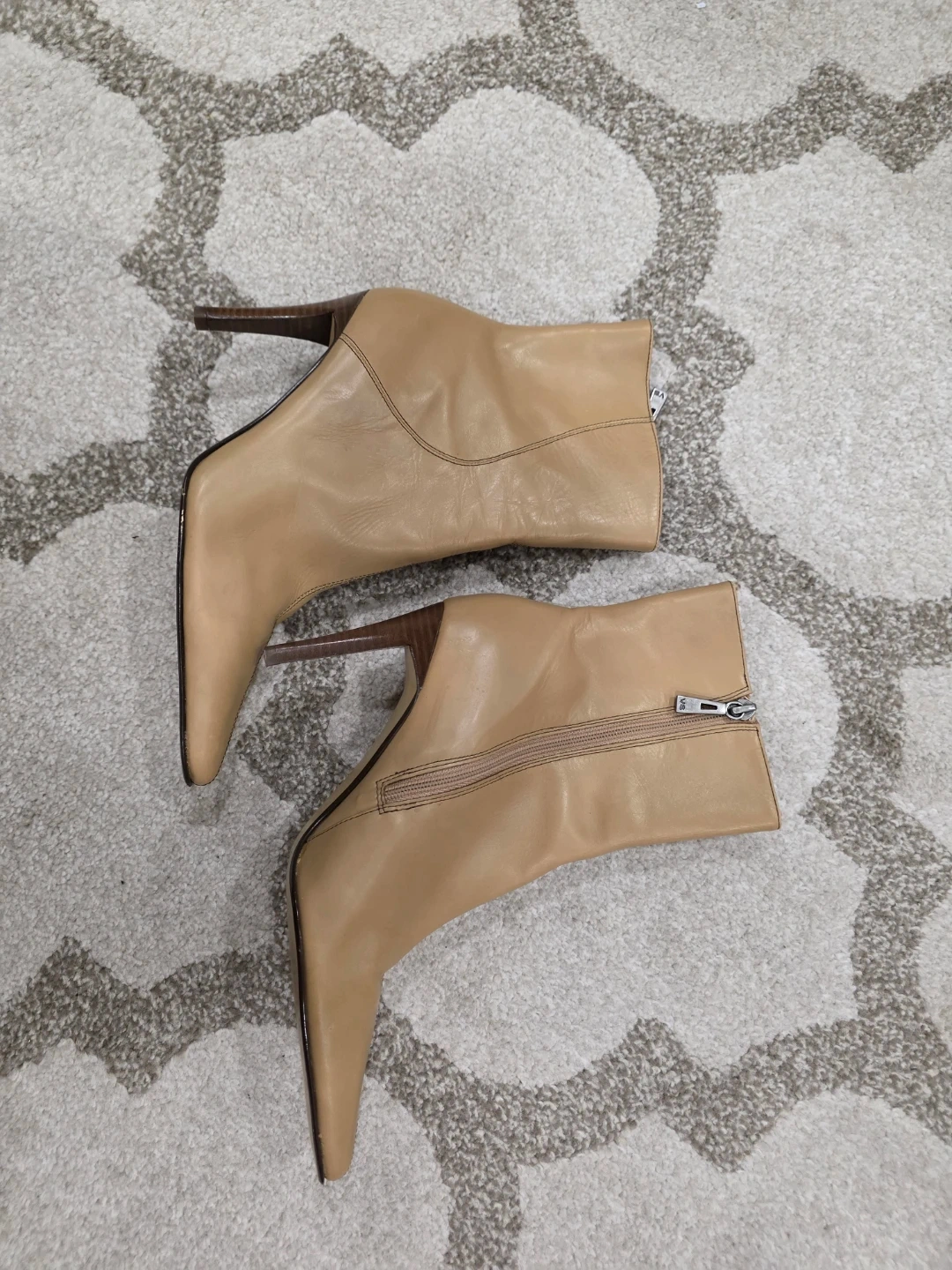 Selling a pair of Valerie Stevens heeled booties in a tan colour. They are a size 7M. Perfect for adding a touch of style to any outfit!