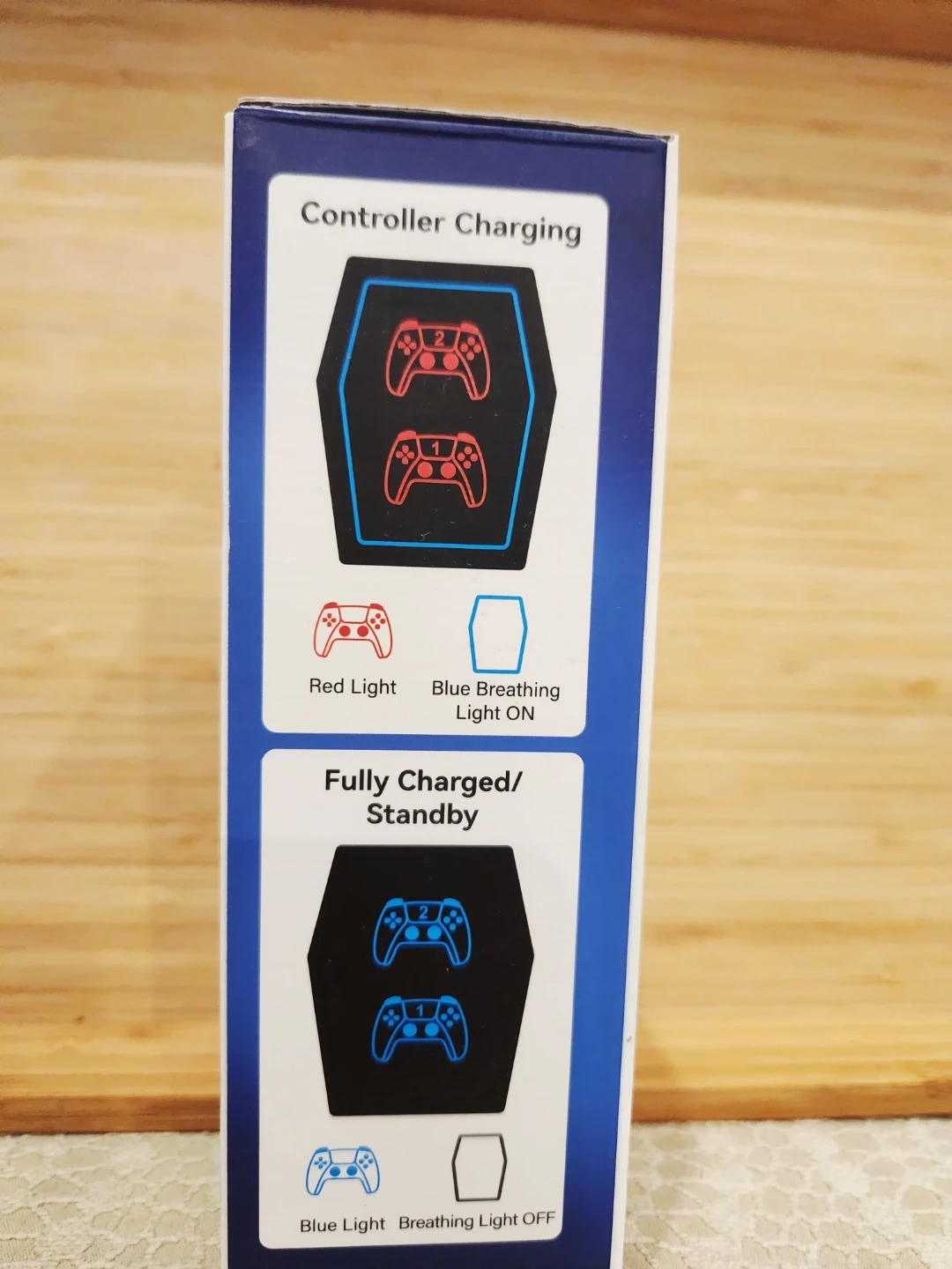 This is a TOKLLUCK Controller Charging Station designed for P5 and Edge controllers. It features fast charging and LED indicators for charging status. The station also has an ambient light and built-in protection.