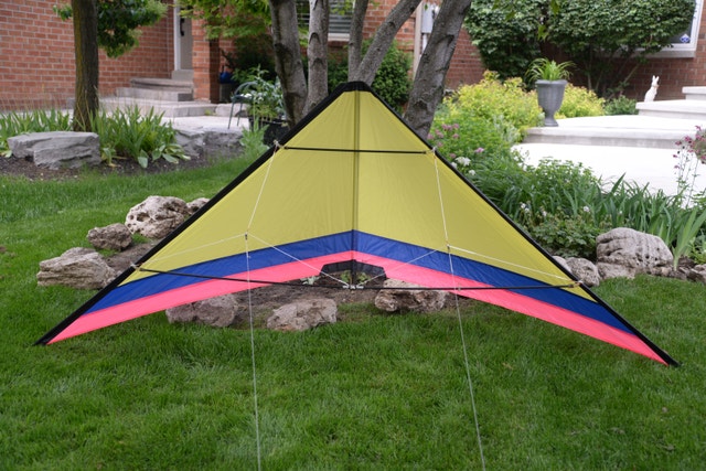Spinoff dual line stunt kite made by Top of the Line. Wingspan: 102" x 43". Flying lines sold separately. PU: Winston Churchill Blvd & Burnhamthorpe Rd W in Mississauga.