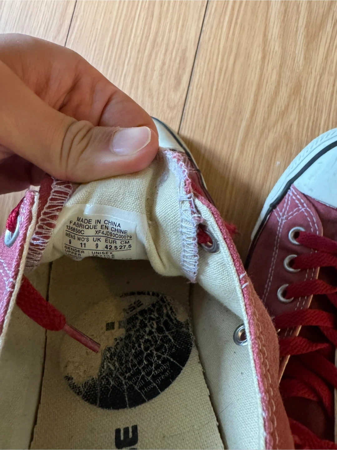 Selling a pair of Converse All Star low top sneakers in a unique red colour! They're in great shape and ready for a new home. The size is a men's 11, which translates to a women's 13. These classic sneakers are perfect for everyday wear and add a pop of colour to any outfit
