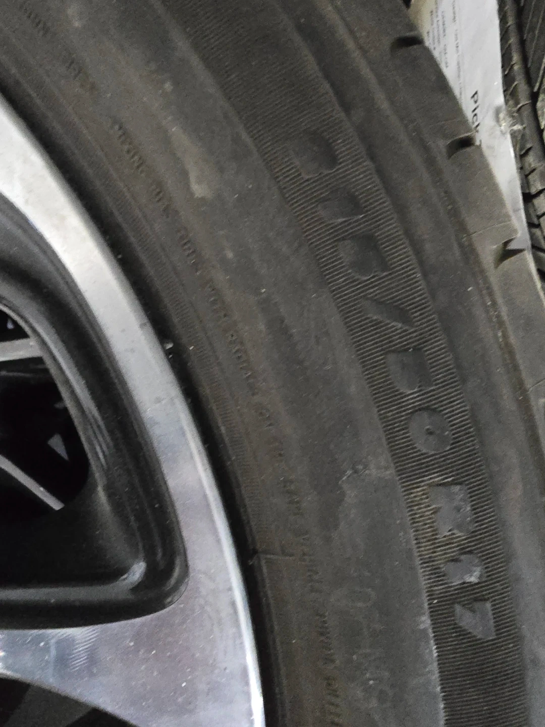Set of four tires mounted on alloy rims. Size P215/55R17. These tires and rims are in good used condition. They're ready for a new vehicle!
