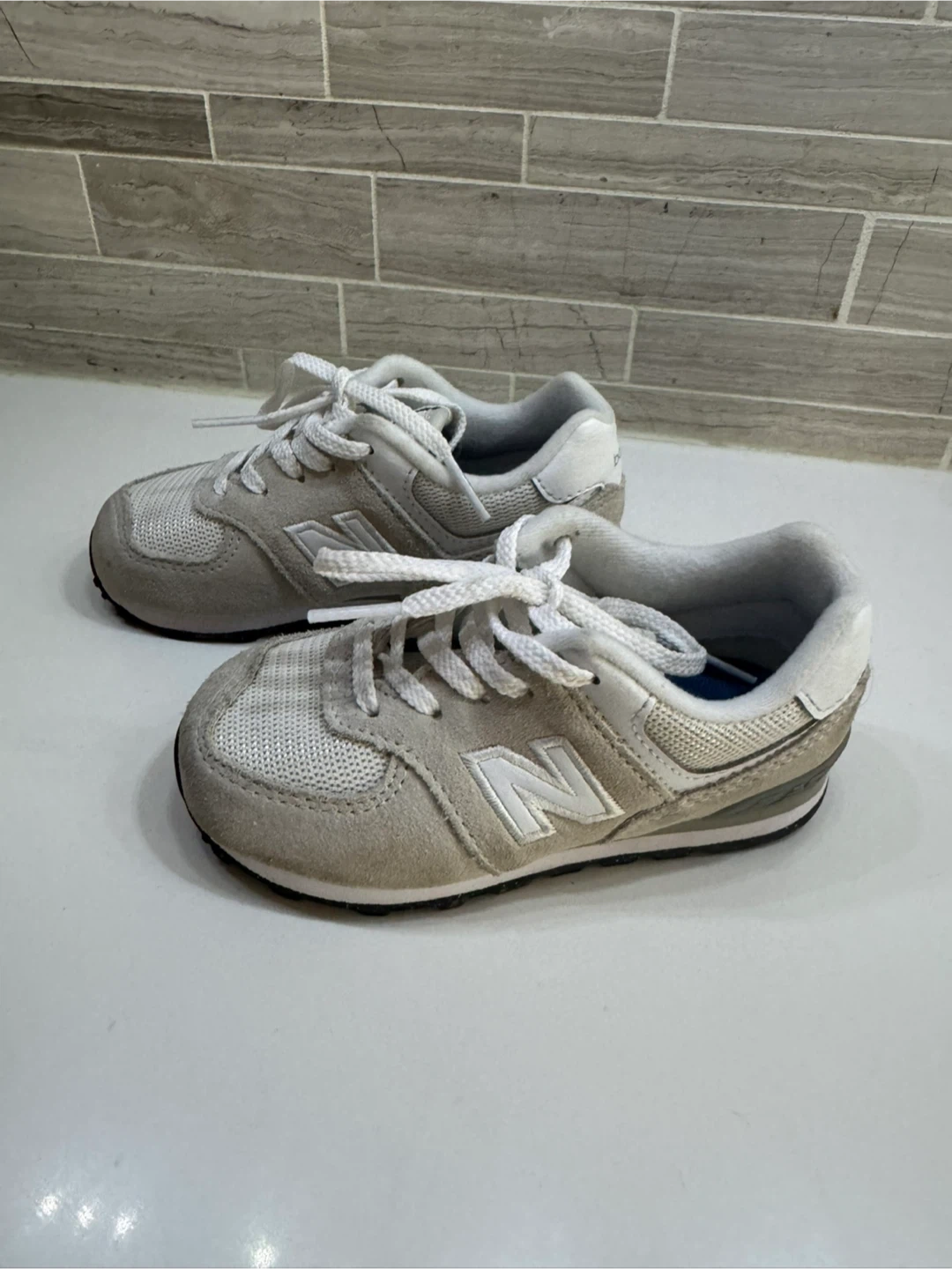 Here are some New Balance 574 sneakers for kids! They are in great condition and ready for a new owner. Perfect for your little one's adventures