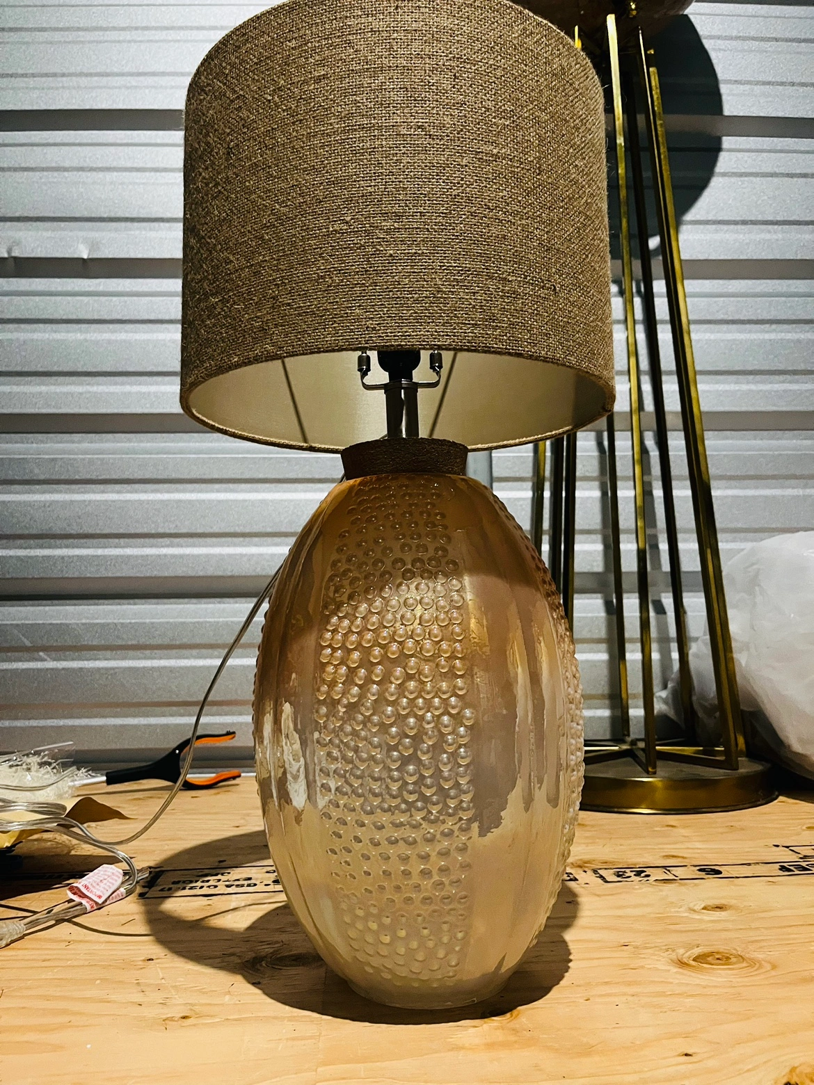 Buy & SellTable LampTable Lamp$10This lamp has a textured, oval-shaped base with a brown burlap shade. It has a white cord with a standard plug. The lamp is missing a bulb.WHERE TO MEETCheck LocationView MapSELLERPreetiVales Of Castlemore120 reviews1 chats·0 favorites·31 viewsSEND CHAT TO SELLERHi Preeti! I’m interested in your listing.Hi Preeti! I’m interested in your listing.Get the Karrot app to chatSign In to chat
