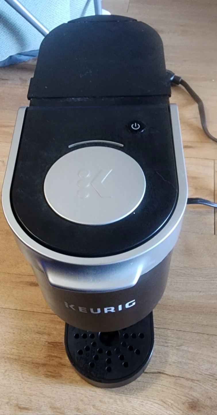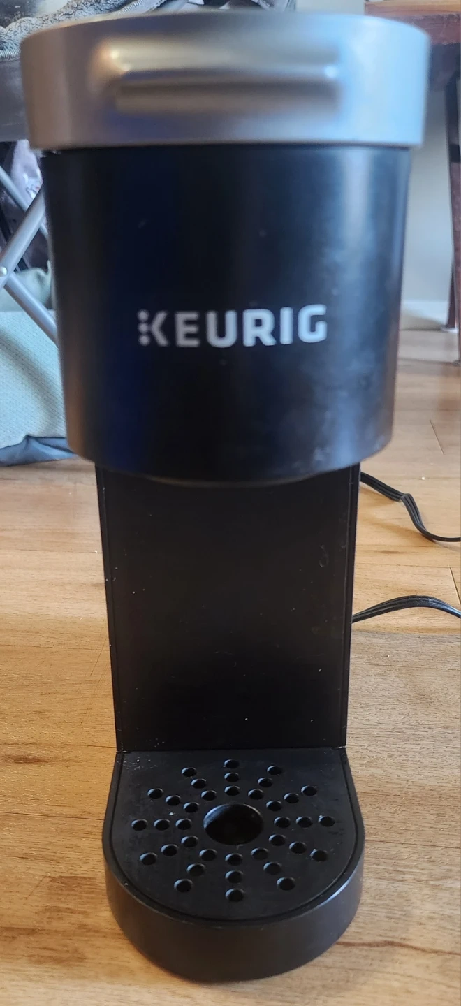 This is a black Keurig coffee maker. It's a single-serve brewer perfect for a quick cup. The drip tray is removable for easier cleaning.