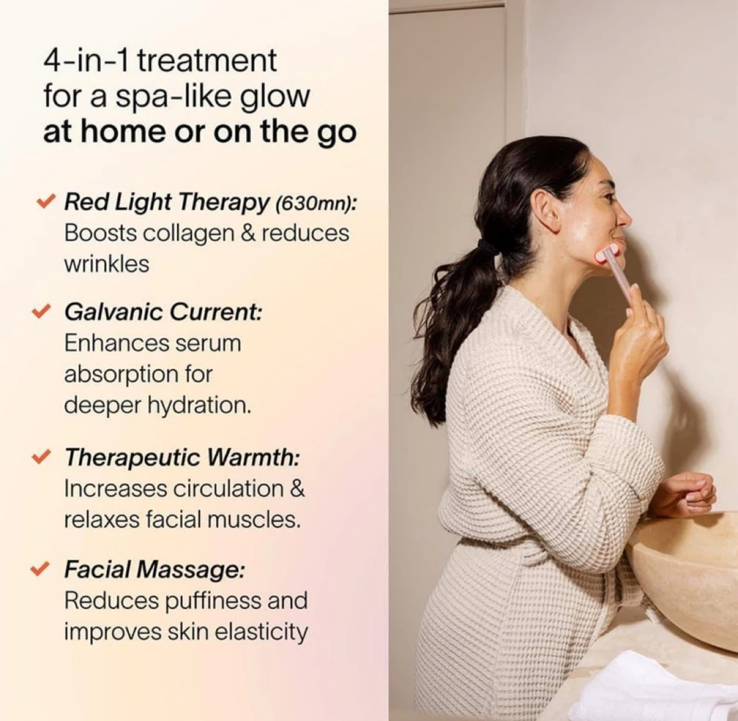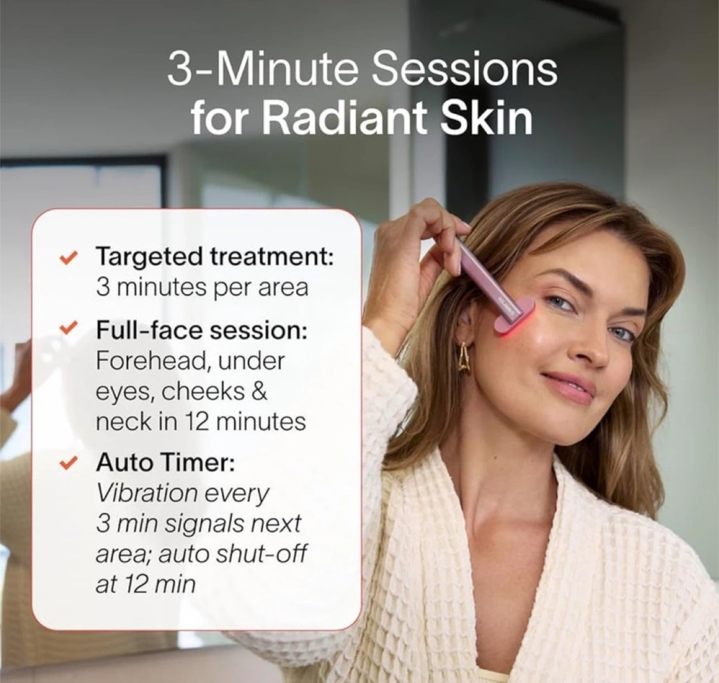 This Solawave wand offers 4-in-1 skincare treatment with red light therapy, galvanic current, therapeutic warmth, and facial massage. It's designed for targeted treatments, with a 3-minute auto timer per area for a full-face session in 12 minutes. Experience a spa-like glow at home with this device!