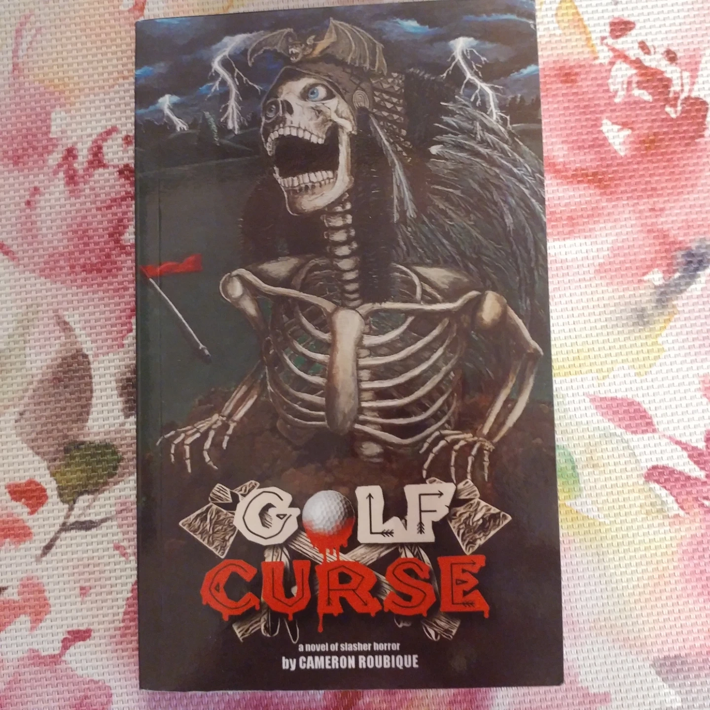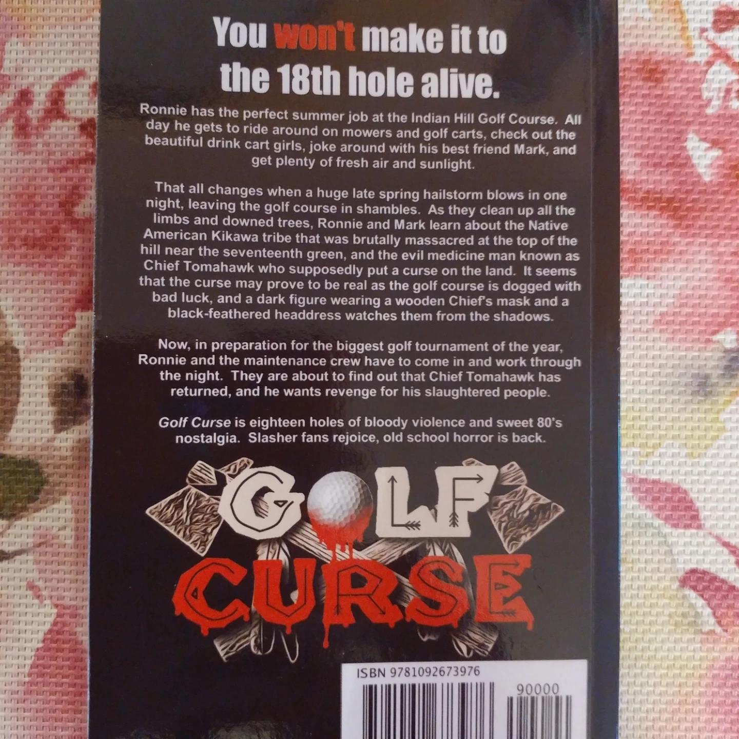 Selling the book Golf Curse: A Novel of Slasher Horror by Cameron Roubique. It's a thrilling read with elements of bloody violence and 80's nostalgia! Perfect for horror fans