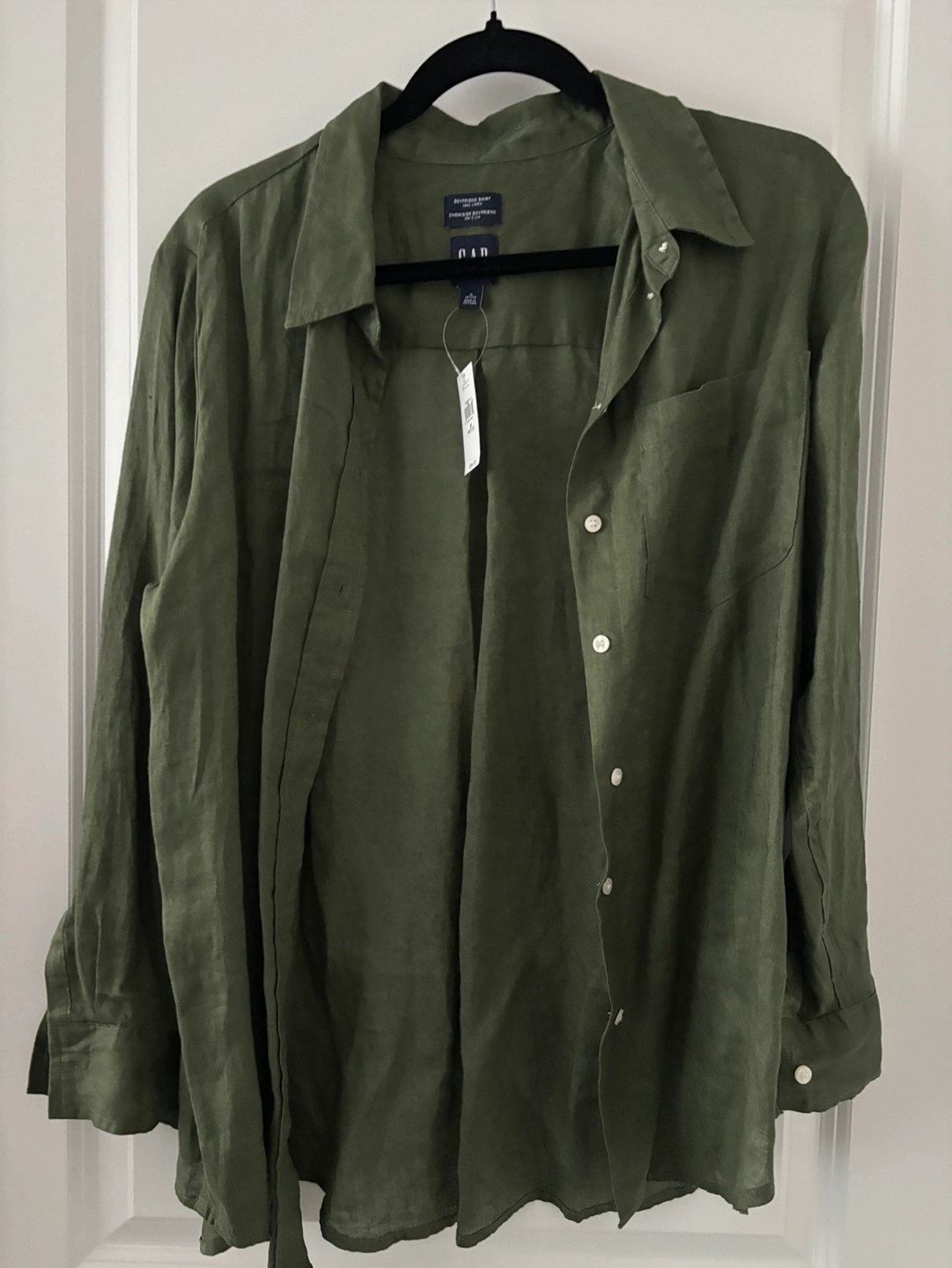 GAP Women's Linen Boyfriend Shirt - Jungle green