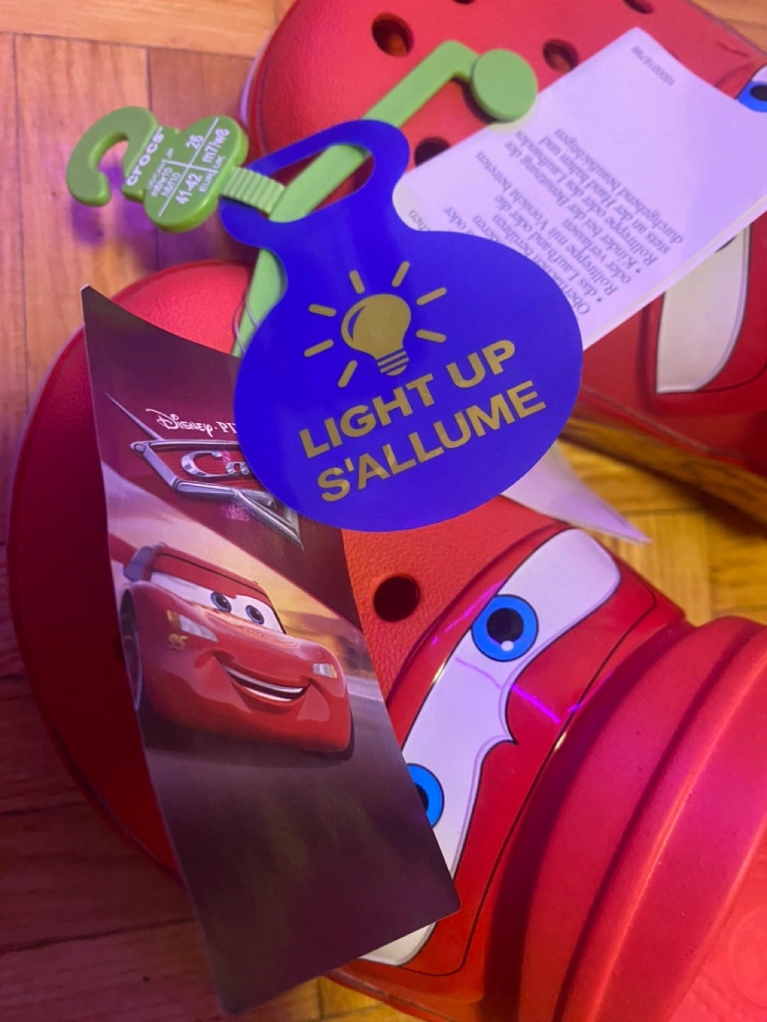 These are a pair of brand new Crocs clogs featuring a Disney Pixar Cars design! They are a size 8 for men and 10 for women. The tag says "Light Up S'Allume". All tags+Crocs bag included