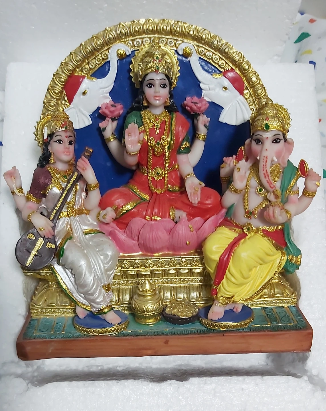 Goddess Lakshmi, Saraswati, and Ganesha Statue