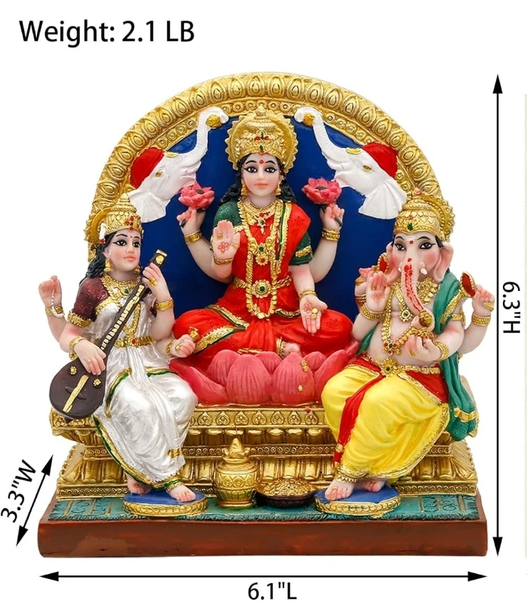 Goddess Lakshmi, Saraswati, and Ganesha Statue