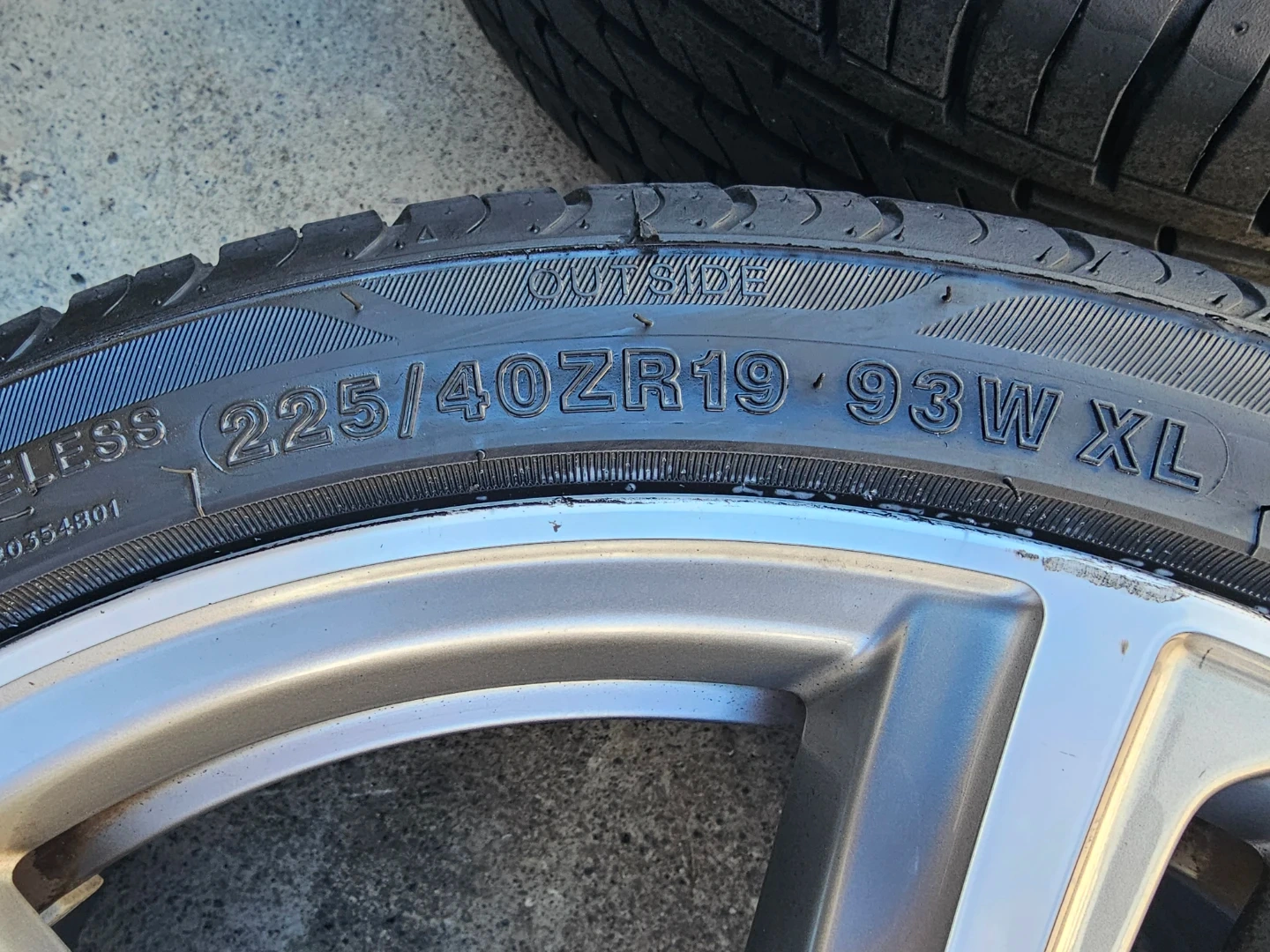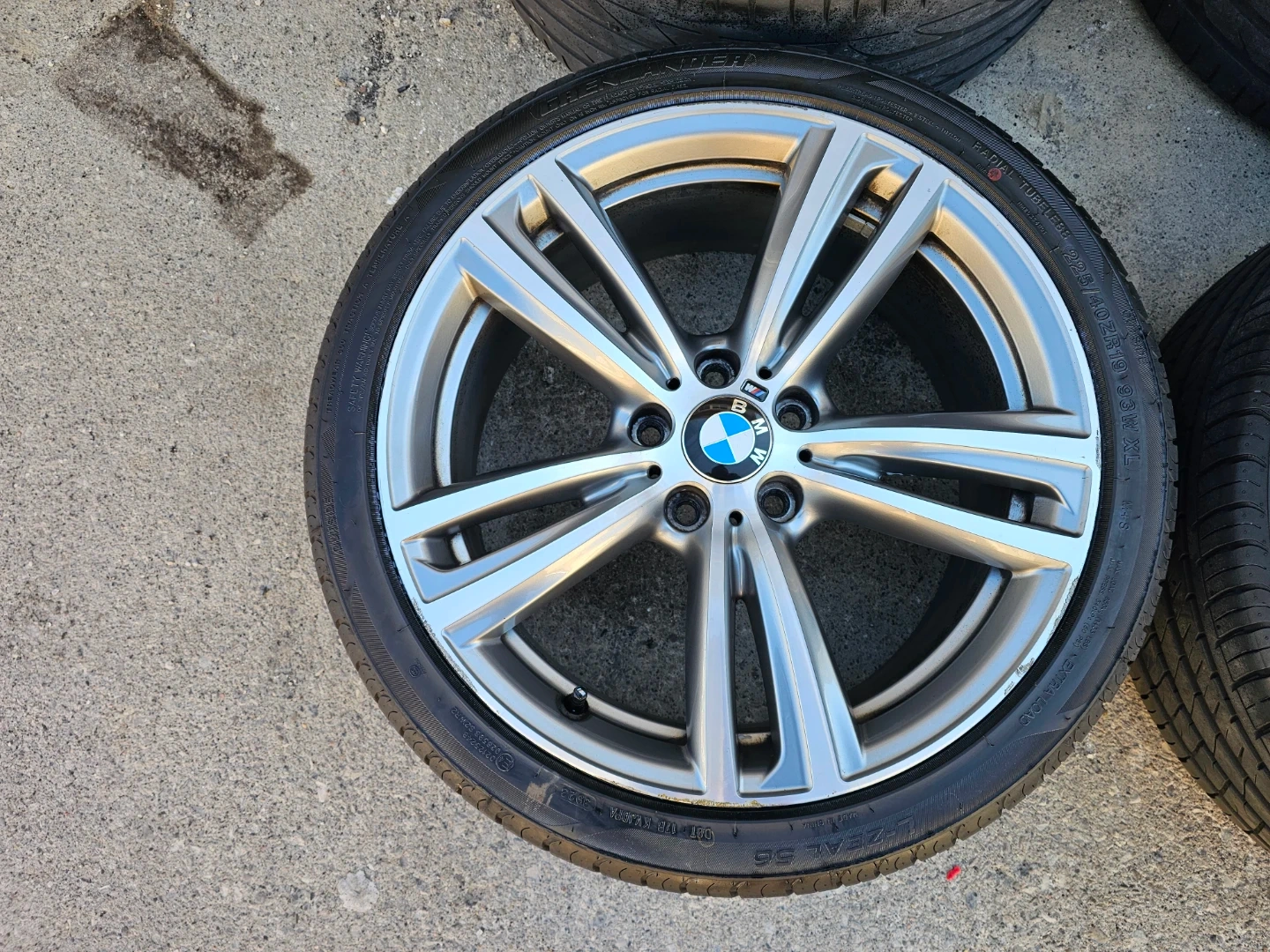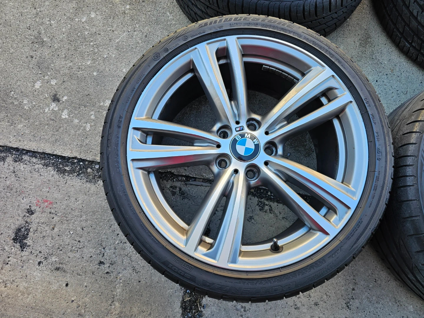 Set of 4 original 19" BMW 3, 4 series (m-sport) rims and all season tires on them. Rims and tires are in good shape, no damage, no bend, no cracks. Wheels are staggered set up
