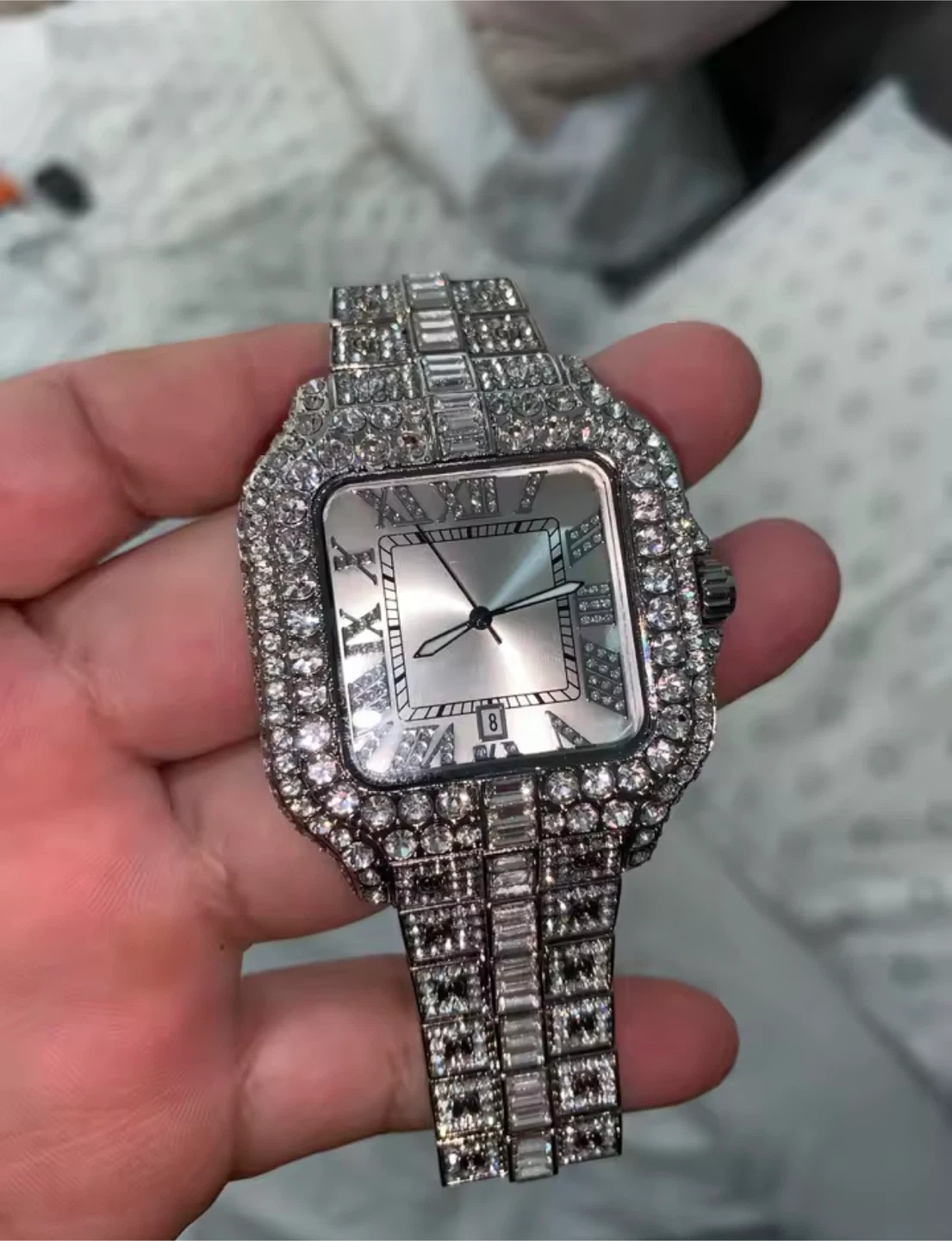 Uniguet Bling Watch with Roman Numerals iced out fo men