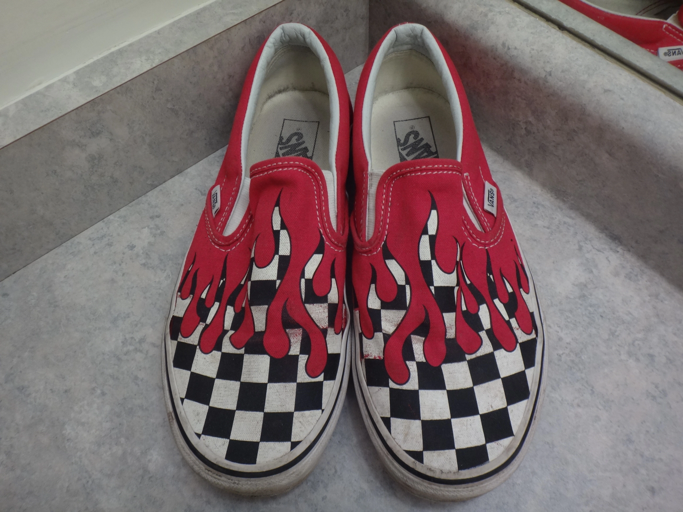 ✅♻️VANS Men's 7.5 / Women's 9 Checkerboard Flames Slip On Shoes