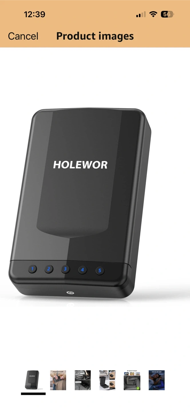 This HOLEWOR security safe box offers passcode or backup key access. It features an internal LED light for visibility. The cable measures 40.16 inches long and it's designed for under-seat storage. It's useful for securing valuables during transport.