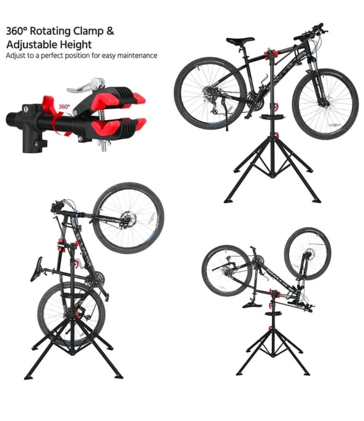 Height Adjustable: The telescopic design allows for height adjustment from 50. 5cm/20inch to 91cm/36inch, enabling you to work on any part of your bike comfortably Four-Leg Supports: Features four legs for enhanced stability, with triangular protective pads ensuring the stand remains steady during repairs Durable Materials: Constructed from iron and plastic, this repair stand is built to last and can support up to 30kg/66lb Extra Magnetic Tool Tray: Includes a magnetic tool tray for convenient storage of small tools like screws and bolts, with dividers to keep tools organized Foldable & Space-Saving: The foldable design allows for easy storage when not in use, making it simple to assemble and disassemble.