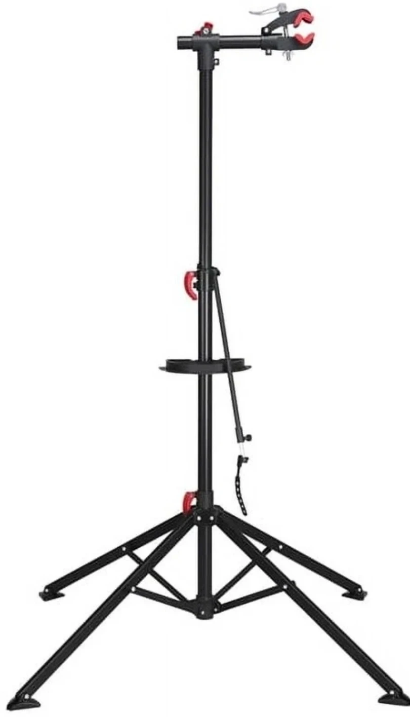 This professional bike repair stand is made from quality metal and durable plastic, with quick-release devices for holding your bike, adjusting the height and folding it up. This bike repair stand aims to offer you a great maintenance/repairing experience. The telescopic tubes, a small tool tray, and foldable legs optimize this simple work stand to provide you with a wonderful experience. With this repair workstation, you don't need to bend over and cause aches.