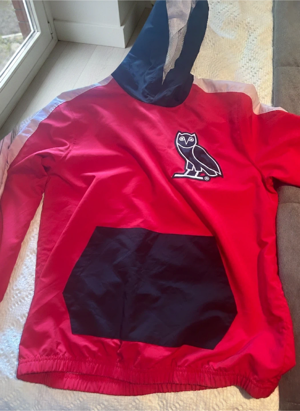 Buy & SellOVO Owl Pullover Hooded JacketOVO Owl Pullover Hooded Jacket$76This OVO hooded jacket is red with black accents and white stripes on the sleeves. It features the iconic owl logo.ConditionLike newSizeMen’s MediumBrandOVOWHERE TO MEETCheck LocationView MapSELLERverifiedZachAurora Centre N650 reviews0 chats·0 favorites·6 viewsSEND CHAT TO SELLERHi Zach! I’m interested in your listing.Hi Zach! I’m interested in your listing.Get the Karrot app to chatSign In to chat
