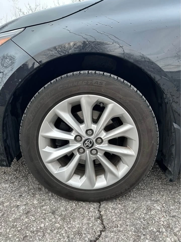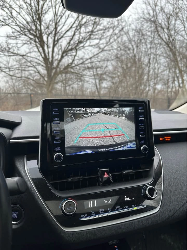 This is the higher trim level offering comfort, tech, and safety. Features include an 8-inch touchscreen with Apple CarPlay/Android Auto, sunroof, automatic climate control, heated power mirrors, heated steering wheel, and heated premium fabric seats. Toyota Safety Sense is included with Pre-Collision System, Lane Departure Alert, and Dynamic Radar Cruise Control. Also has a backup camera and a Smart Key system for keyless entry.